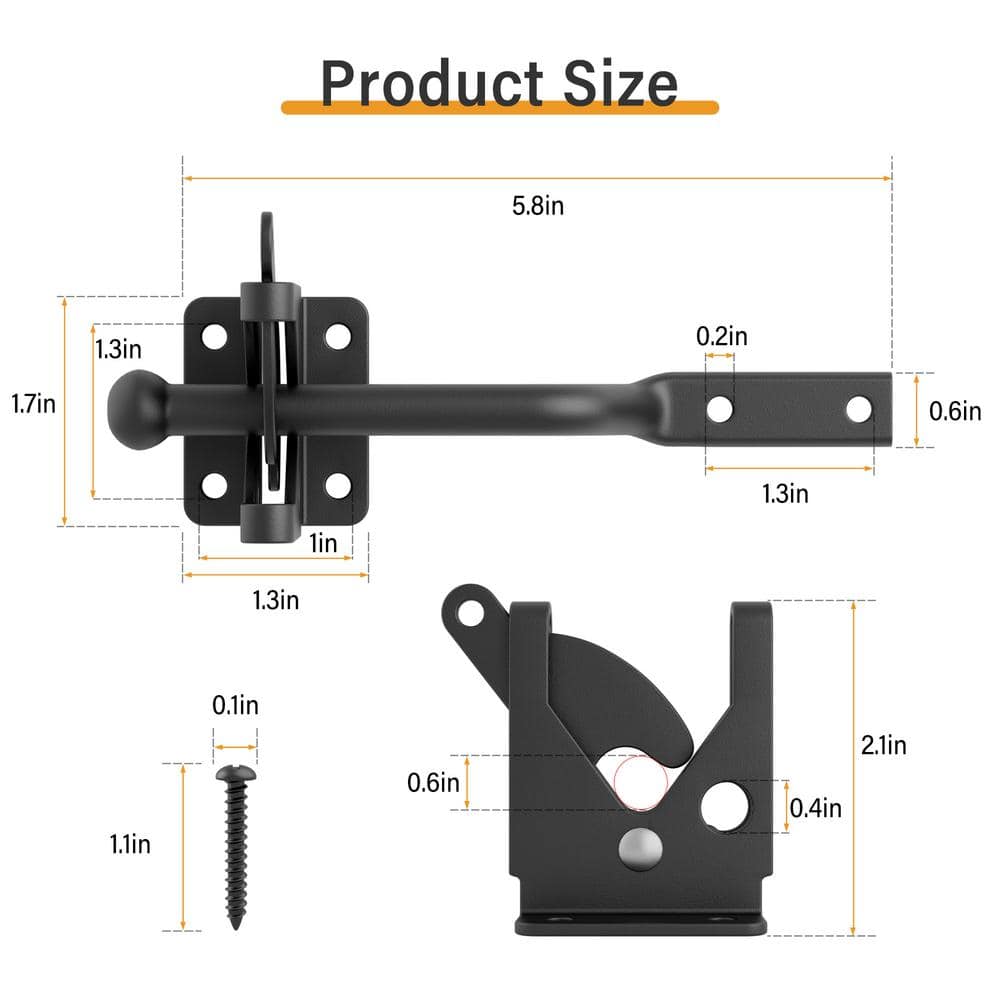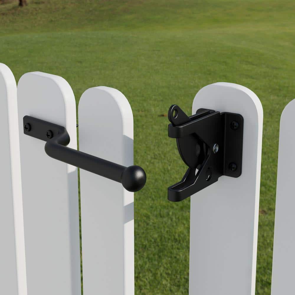 Secure your gates with the WINSOON 5.8 in. Black Heavy-Duty Self-Adjusting Gravity Gate Latch. Designed for both inward and outward swinging gates, this latch offers a self-locking fingertip release for enhanced security, rust resistance, and ease of installation.