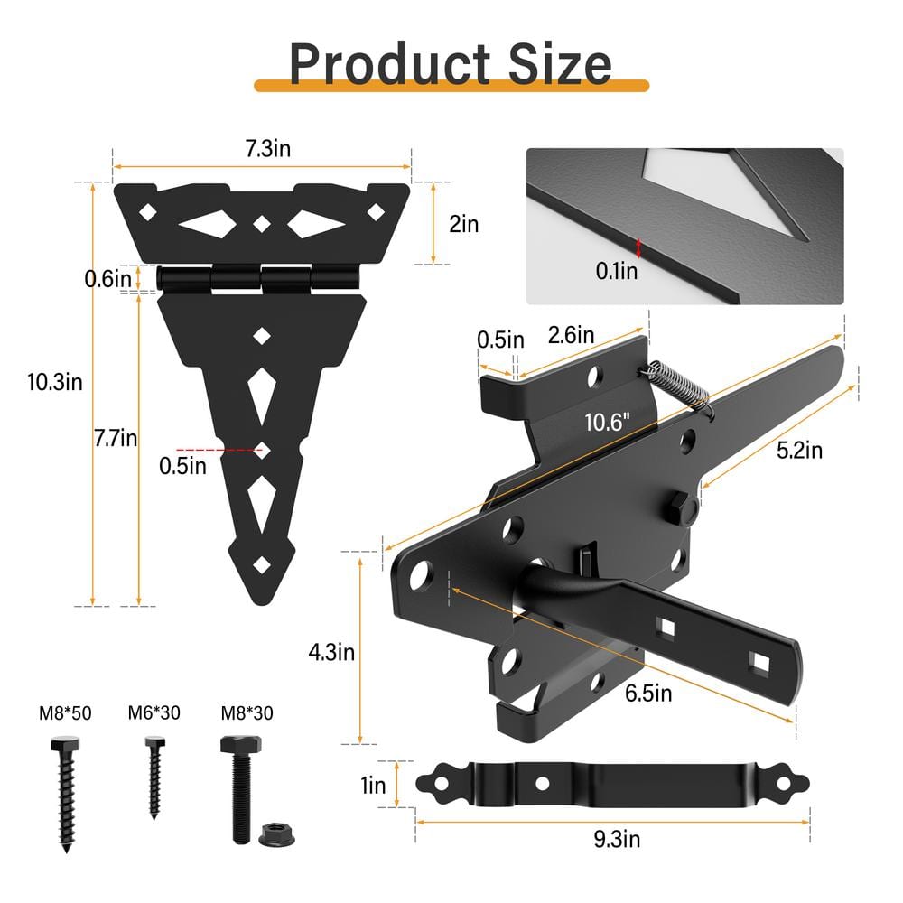 Secure your gates with style and strength; order your WINSOON Black Gate Hinge and Latch Set today to upgrade your outdoor spaces.
