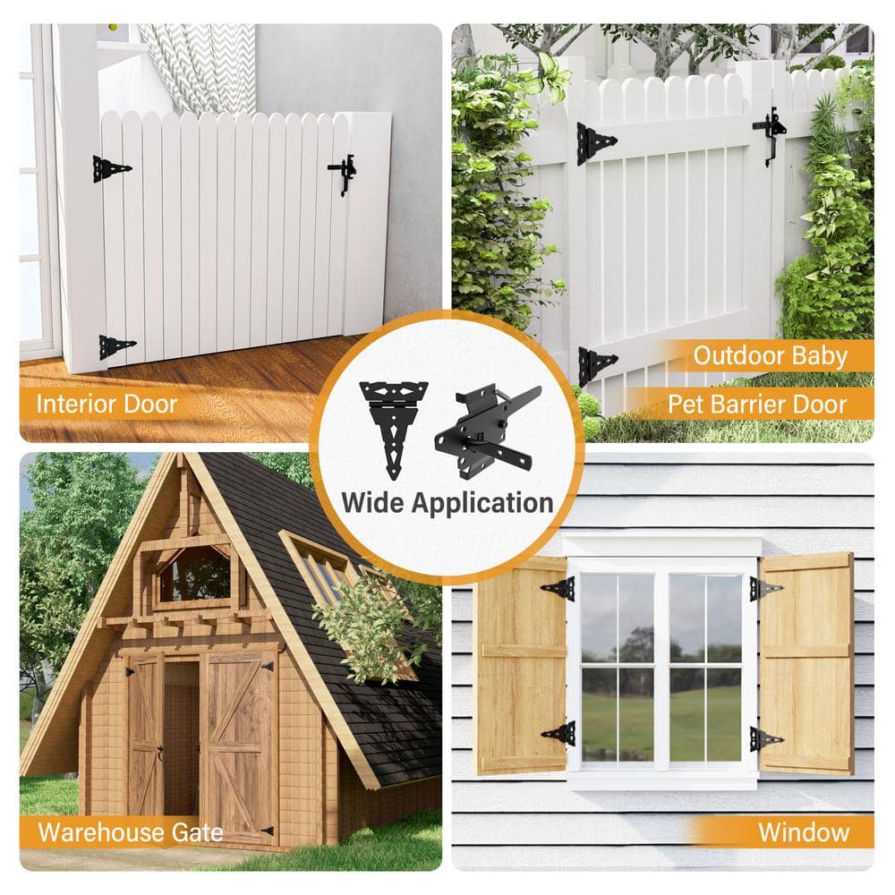 WINSOON Black Gate Hinge and Latch Set Decorative Latch Gate Kit