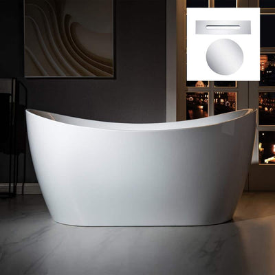 A sleek, double-slipper freestanding tub crafted from high-gloss acrylic and reinforced for durability. Integrated, sealed chrome overflow and drain deliver leak-free performance, while the textured non-slip bottom enhances safety and easy cleaning.