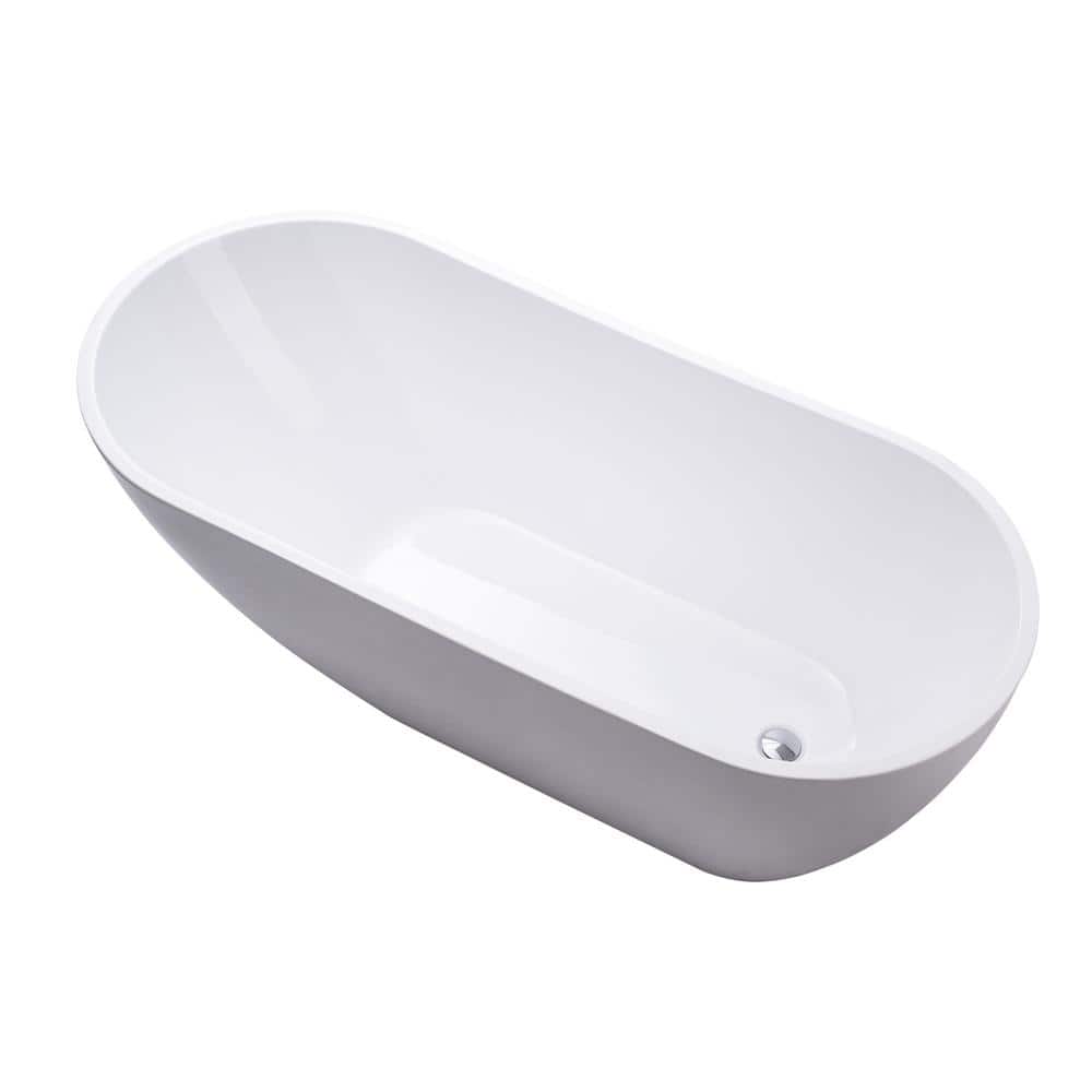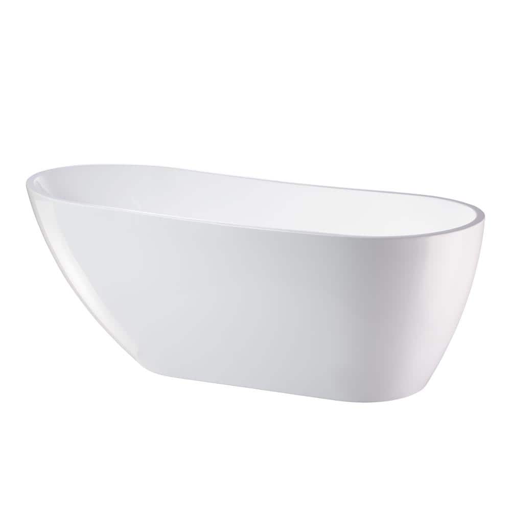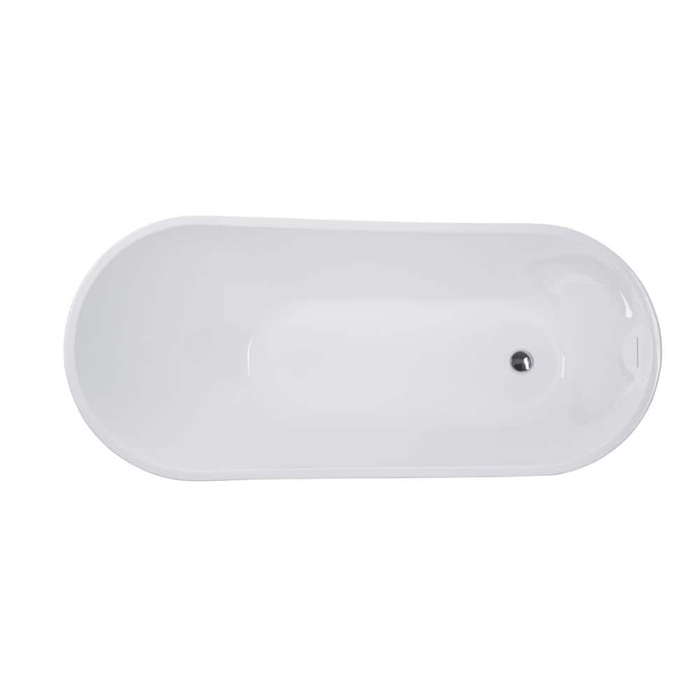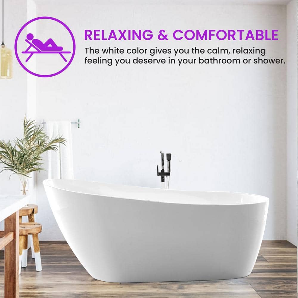 A sleek, flat-bottom acrylic freestanding tub designed for deep soaking comfort. Includes chrome overflow and drain, with durable multi-layer reinforced construction that’s easy to clean and maintain.