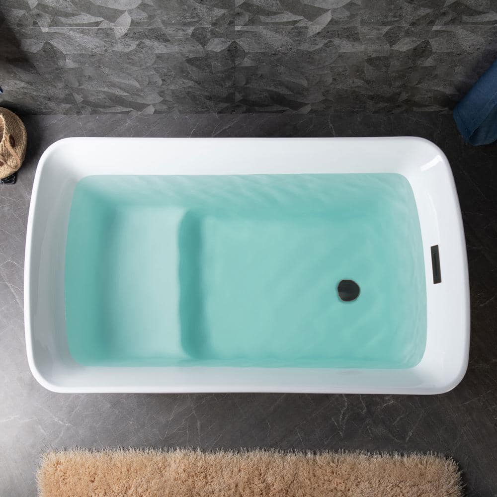 Cube’s softly radiused rectangle brings calm geometry to the bath—pure, modern, and beautifully compact. The deep basin and integrated seat invite a lingering, restorative soak. Style it with a floor-mounted filler in oil-rubbed bronze and moody stone textures for a boutique-spa mood. Consider it a small-space luxury essential.