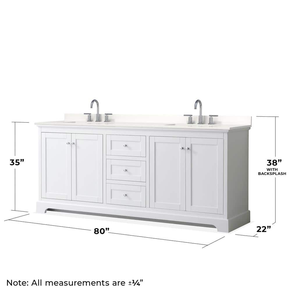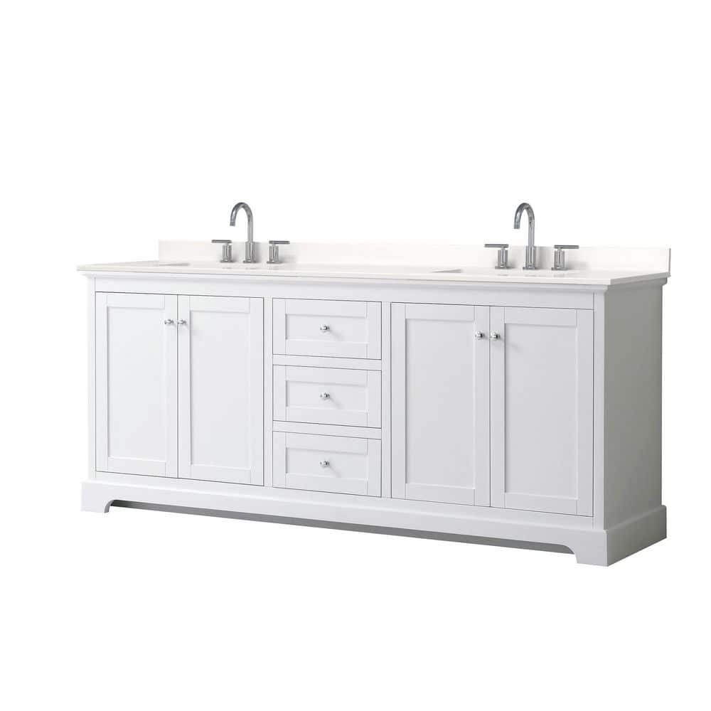 Wyndham Collection Avery 80 in. Double Bath Vanity with White Quartz Top