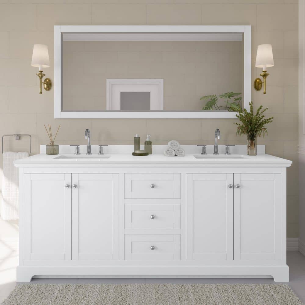 Customers praise the Avery Double Bath Vanity for its elegant design and high-quality construction. Many appreciate the ample storage space and the soft-close drawers, which add a touch of luxury. Some users noted that assembly was required, but found the instructions clear and manageable. A few mentioned that the quartz top's color may vary slightly, but overall satisfaction with the product's durability and aesthetic appeal is high.