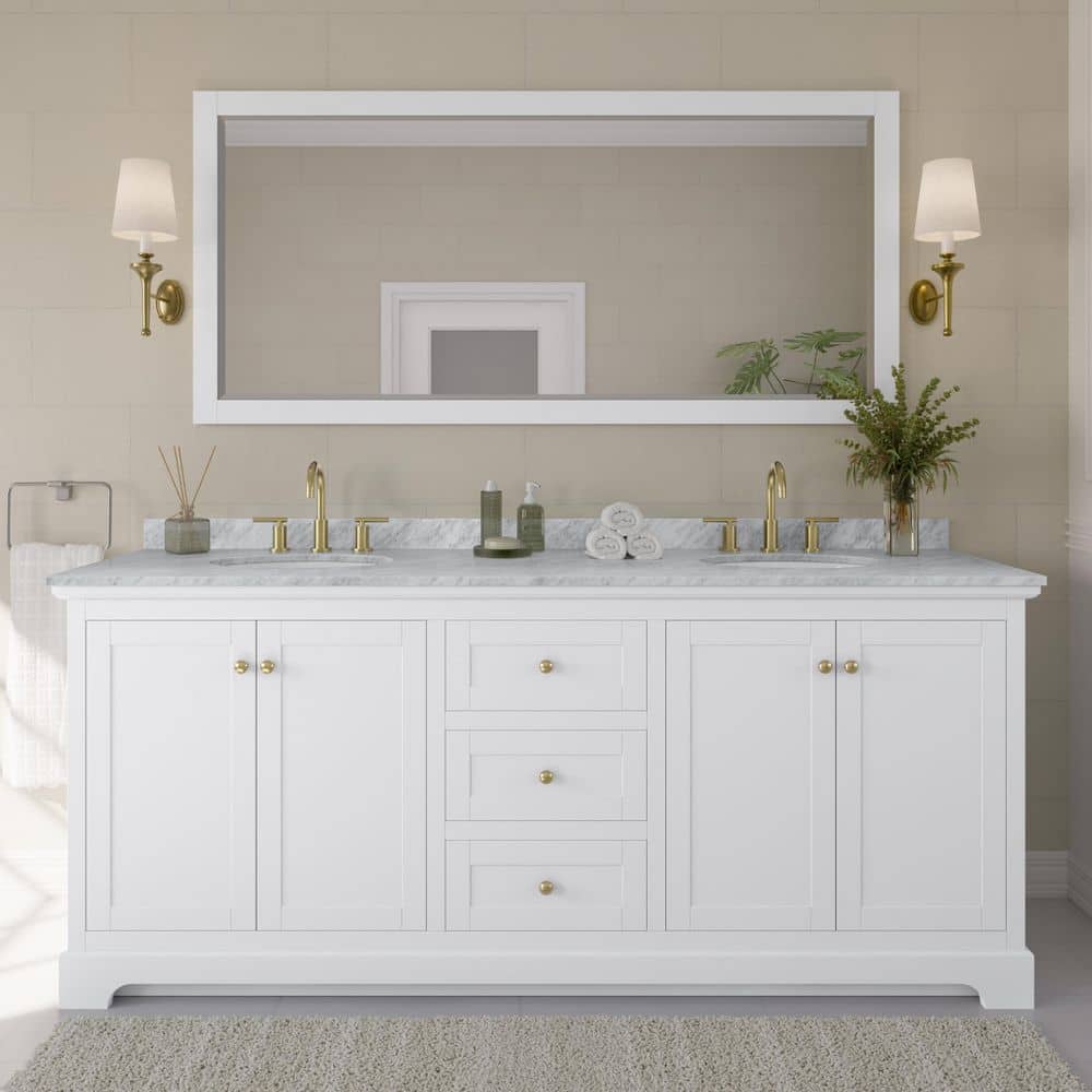 The Wyndham Collection Avery Double Sink Vanity combines timeless design with modern functionality. Featuring a white Carrara marble top and ample storage, this freestanding vanity is perfect for any bathroom remodel.