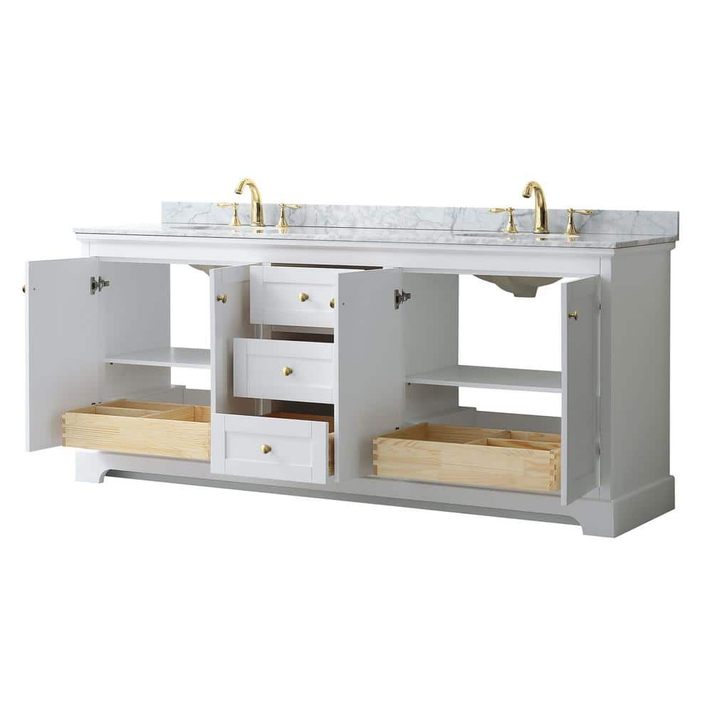 Wyndham Collection Avery 80" Double Sink Bathroom Vanity with White Carrara Marble Top