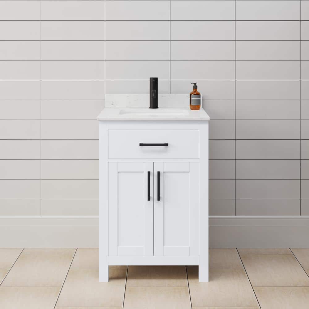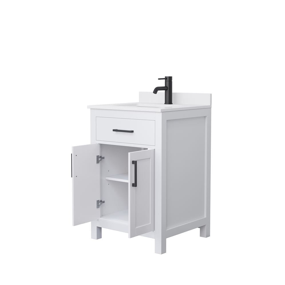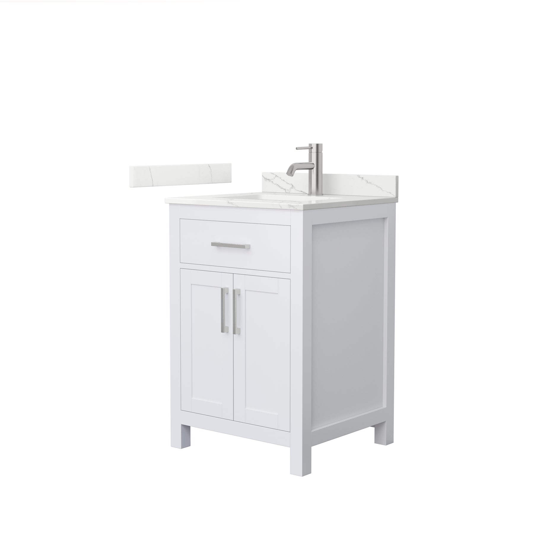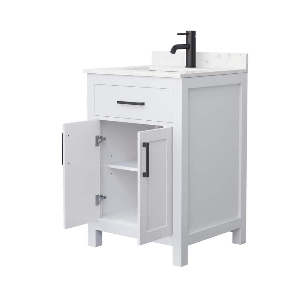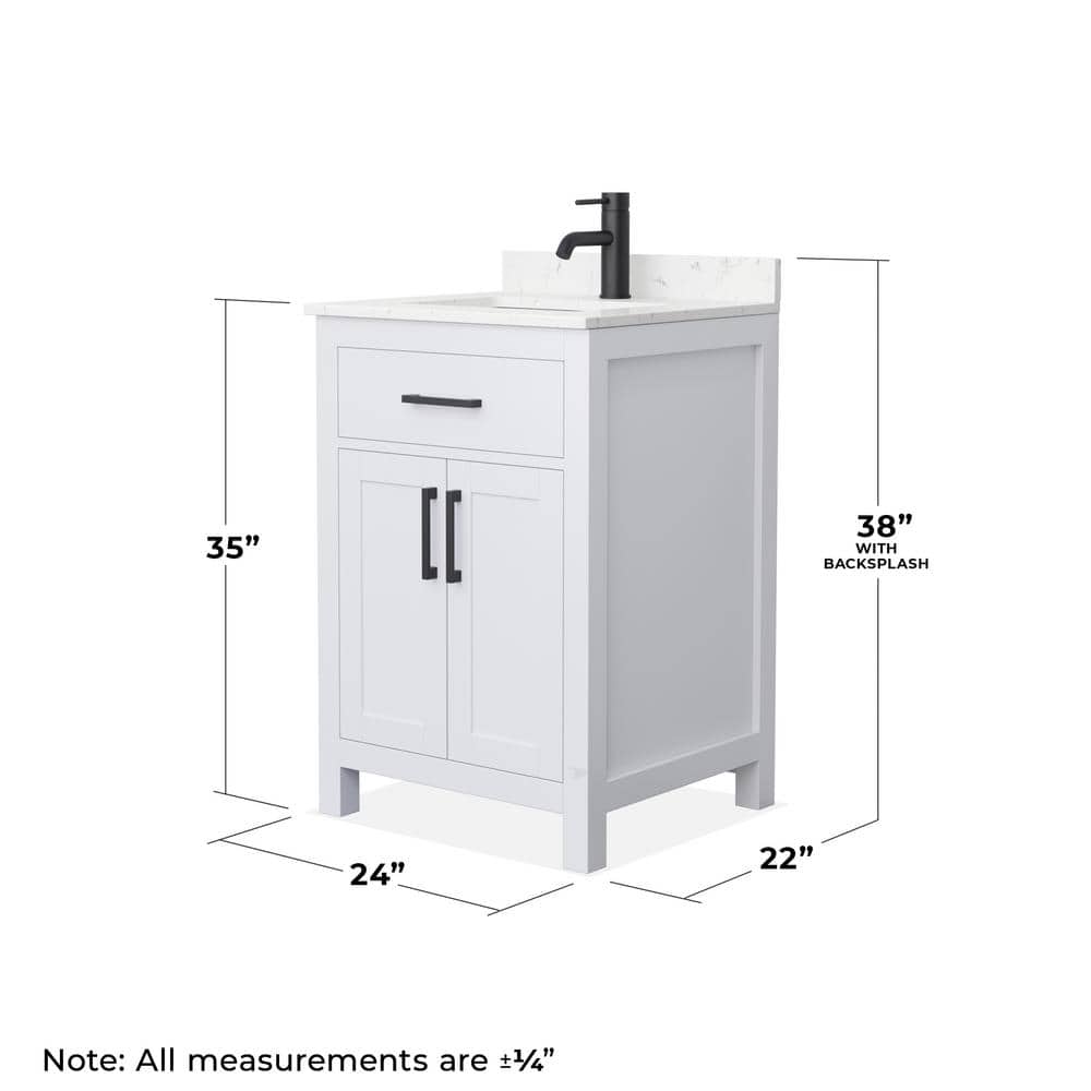 The Wyndham Collection Beckett 24" Single Bath Vanity combines timeless design with modern functionality. Featuring a Carrara cultured marble top and soft-close doors, it offers ample storage and a sleek aesthetic.