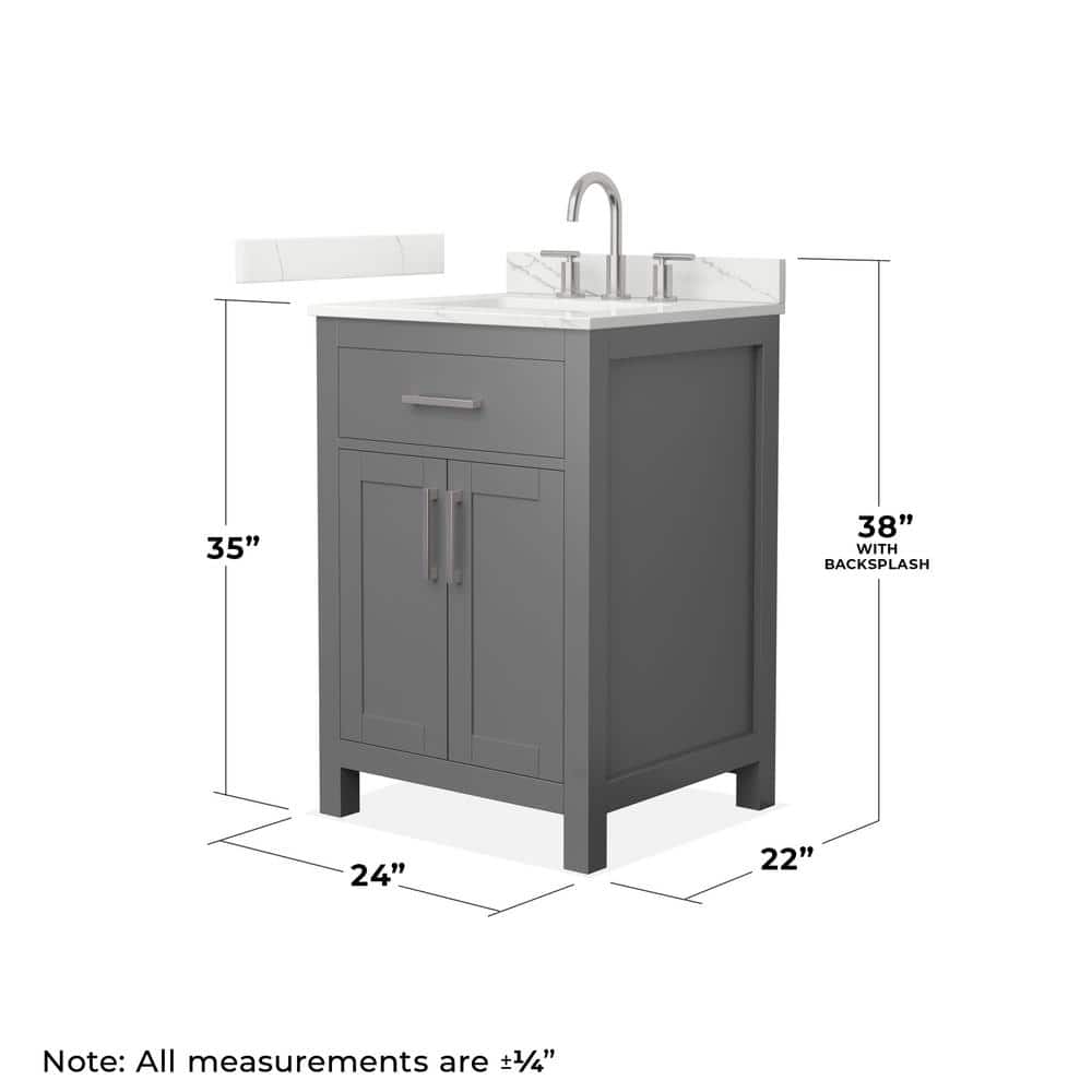 Wyndham Collection Beckett 24" Freestanding Dark Gray Bath Vanity with Giotto Quartz Top