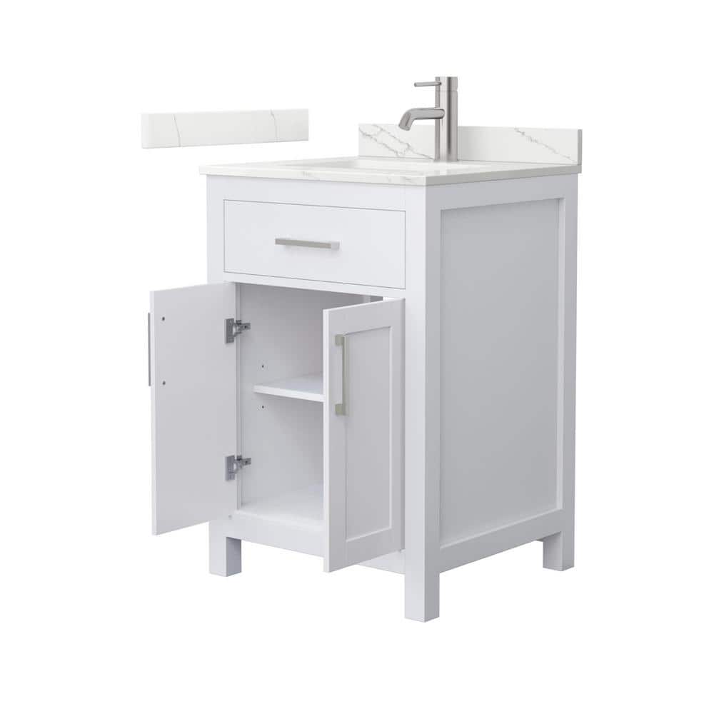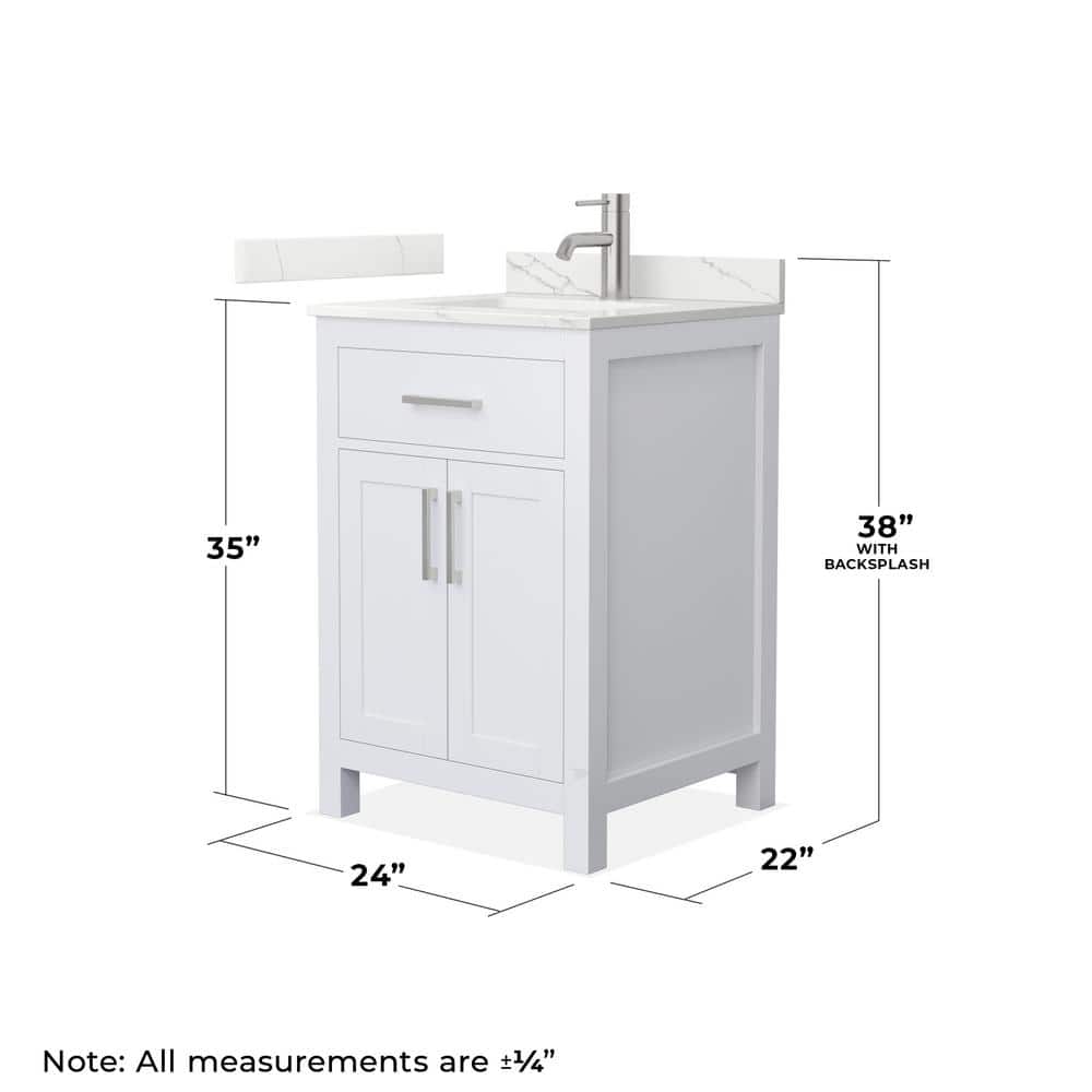 The Wyndham Collection Beckett 24" Freestanding White Bath Vanity combines timeless design with modern functionality. Featuring a Giotto quartz top and soft-close doors, this vanity offers ample storage and a durable, water-resistant finish.