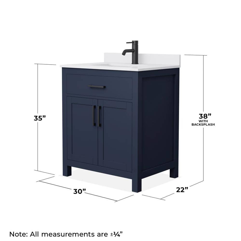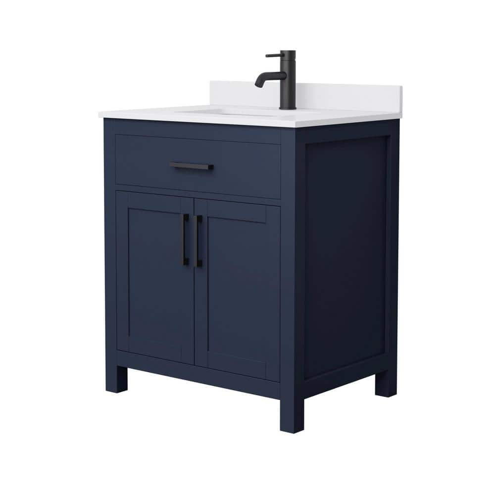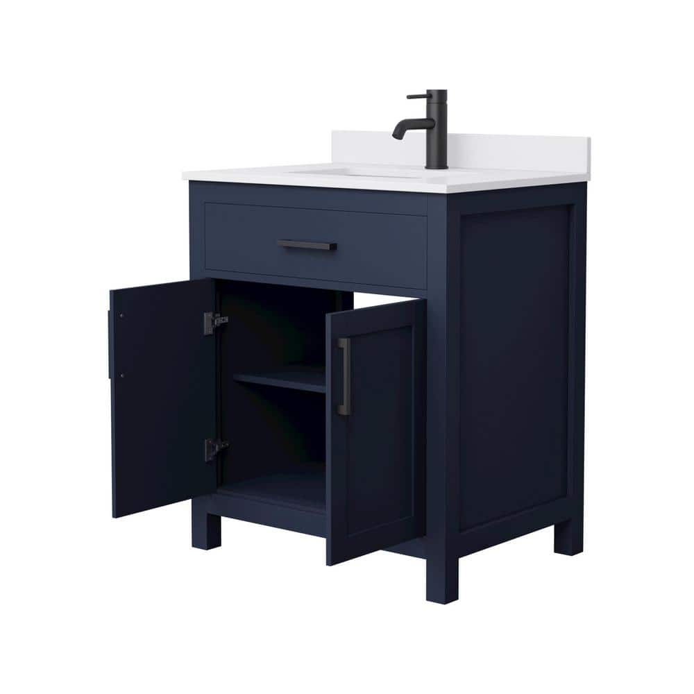 The Wyndham Collection Beckett Bathroom Vanity combines timeless design with modern functionality. Featuring a cultured marble top and a dark blue finish, it offers ample storage and a sophisticated look.