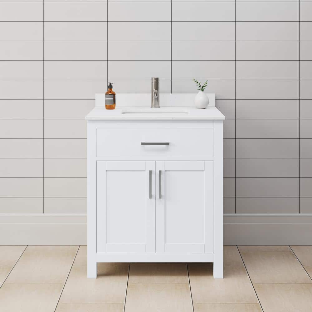 Wyndham Collection Beckett 30" Bathroom Vanity with White Cultured Marble Top