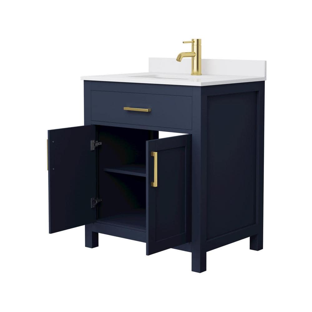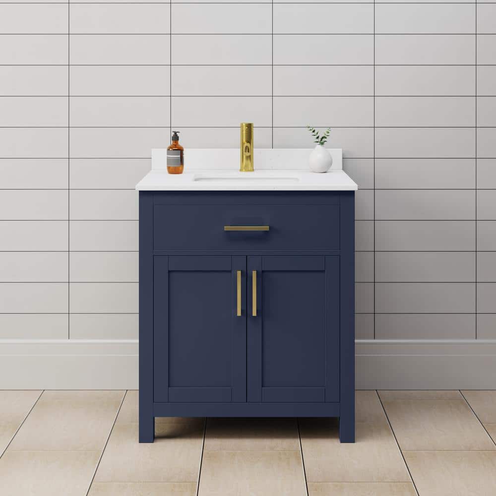 Wyndham Collection Beckett 30" Dark Blue Bathroom Vanity with Cultured Marble Top