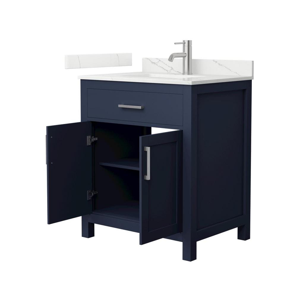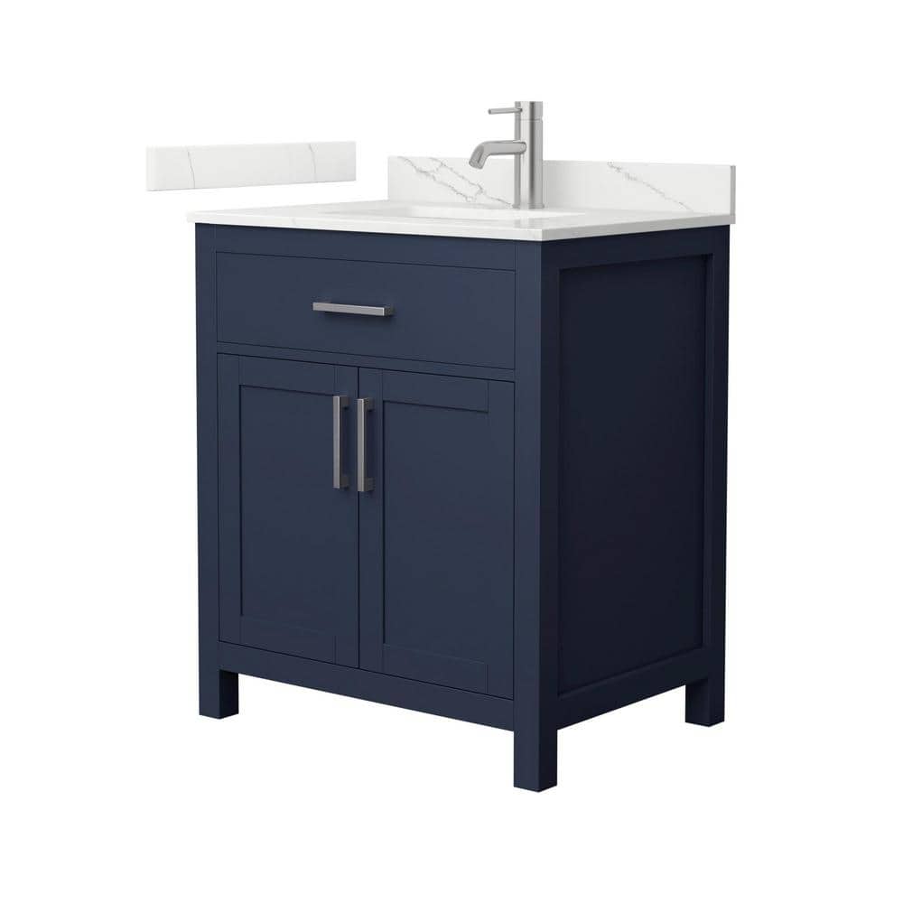Wyndham Collection Beckett 30" Freestanding Dark Blue Bath Vanity with Giotto Quartz Top