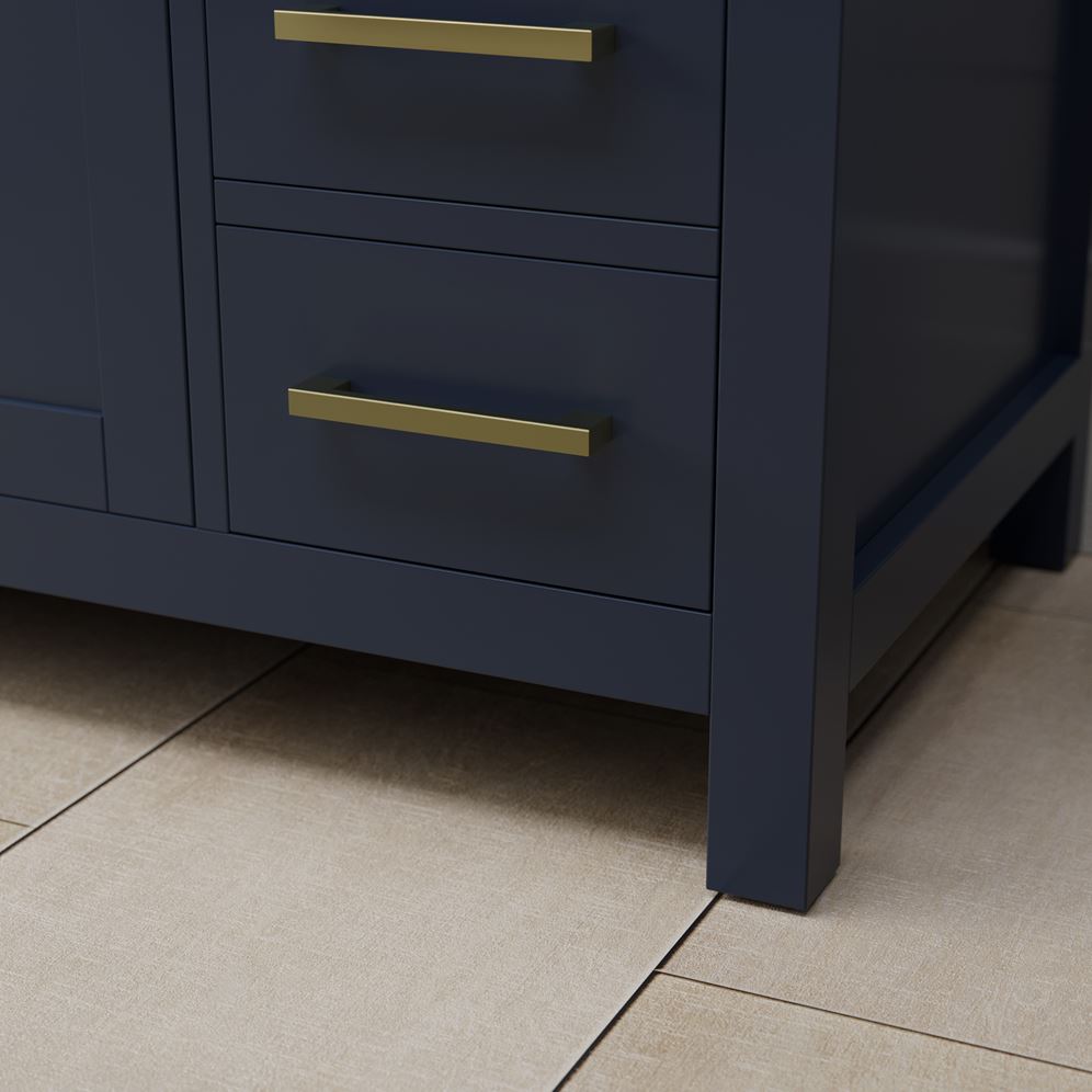 The Beckett vanity is a masterpiece of transitional design, blending classic and modern elements seamlessly. Its dark blue finish and Carrara cultured marble top create a sophisticated focal point for any bathroom. Pair it with brushed nickel fixtures to enhance its refined aesthetic. This vanity is not just a functional piece but a statement of luxury and style.