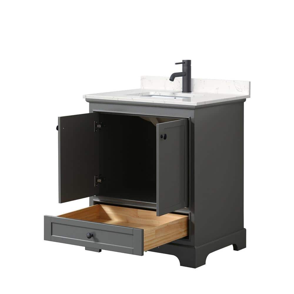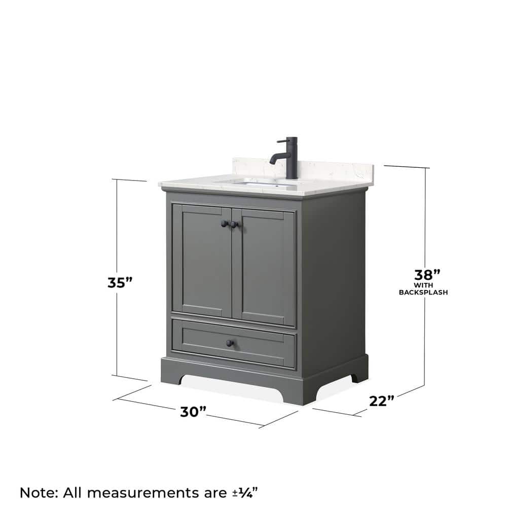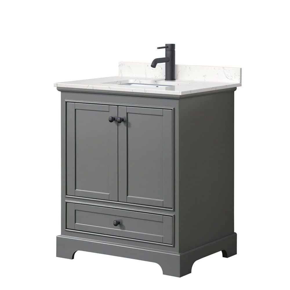 Wyndham Collection Deborah 30" Bathroom Vanity in Dark Gray with Marble Top