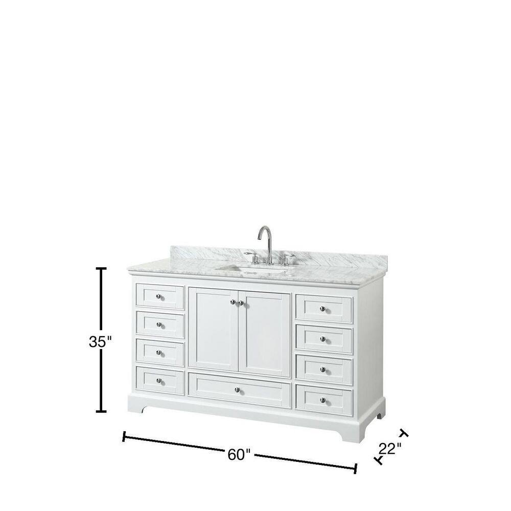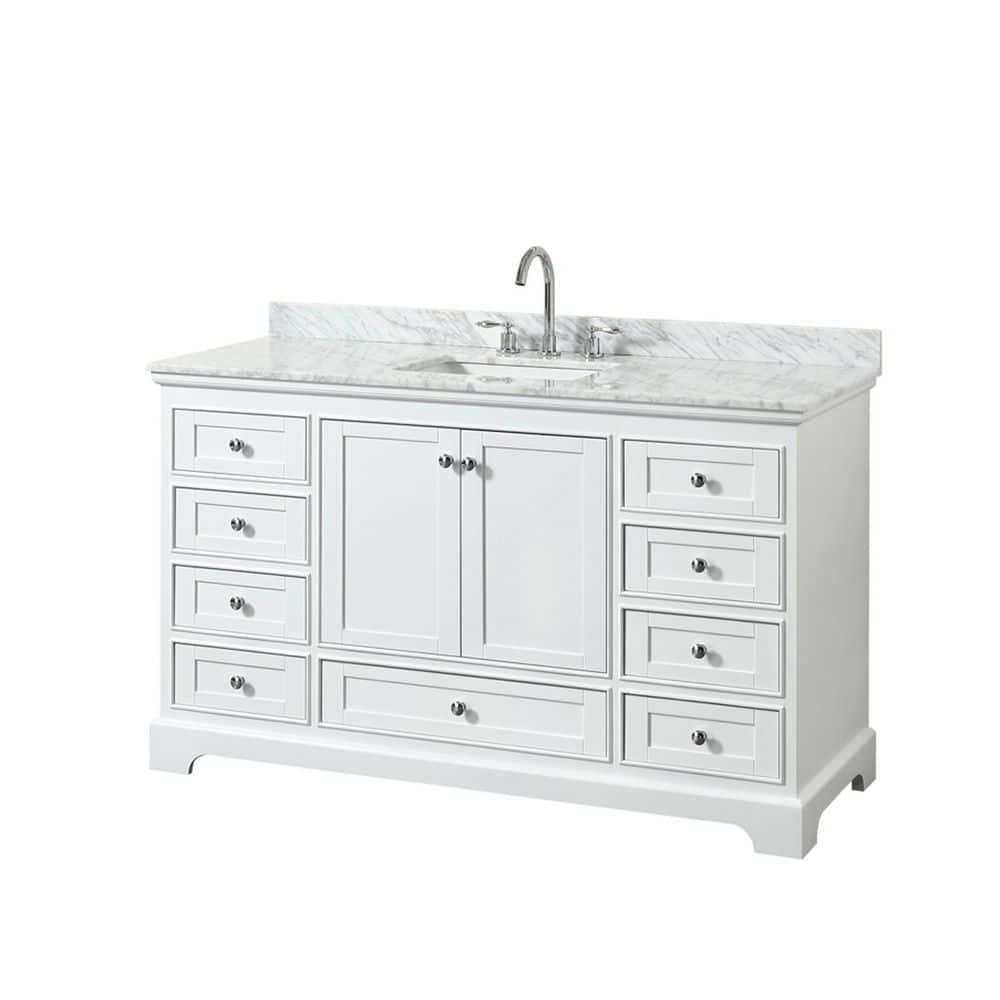Wyndham Collection Deborah 60" White Vanity with Carrara Marble Top