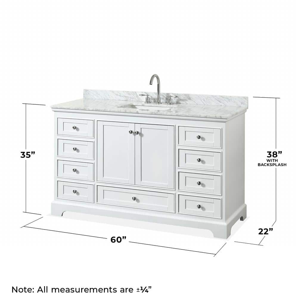 Deborah 60" White Vanity with Carrara Marble Top