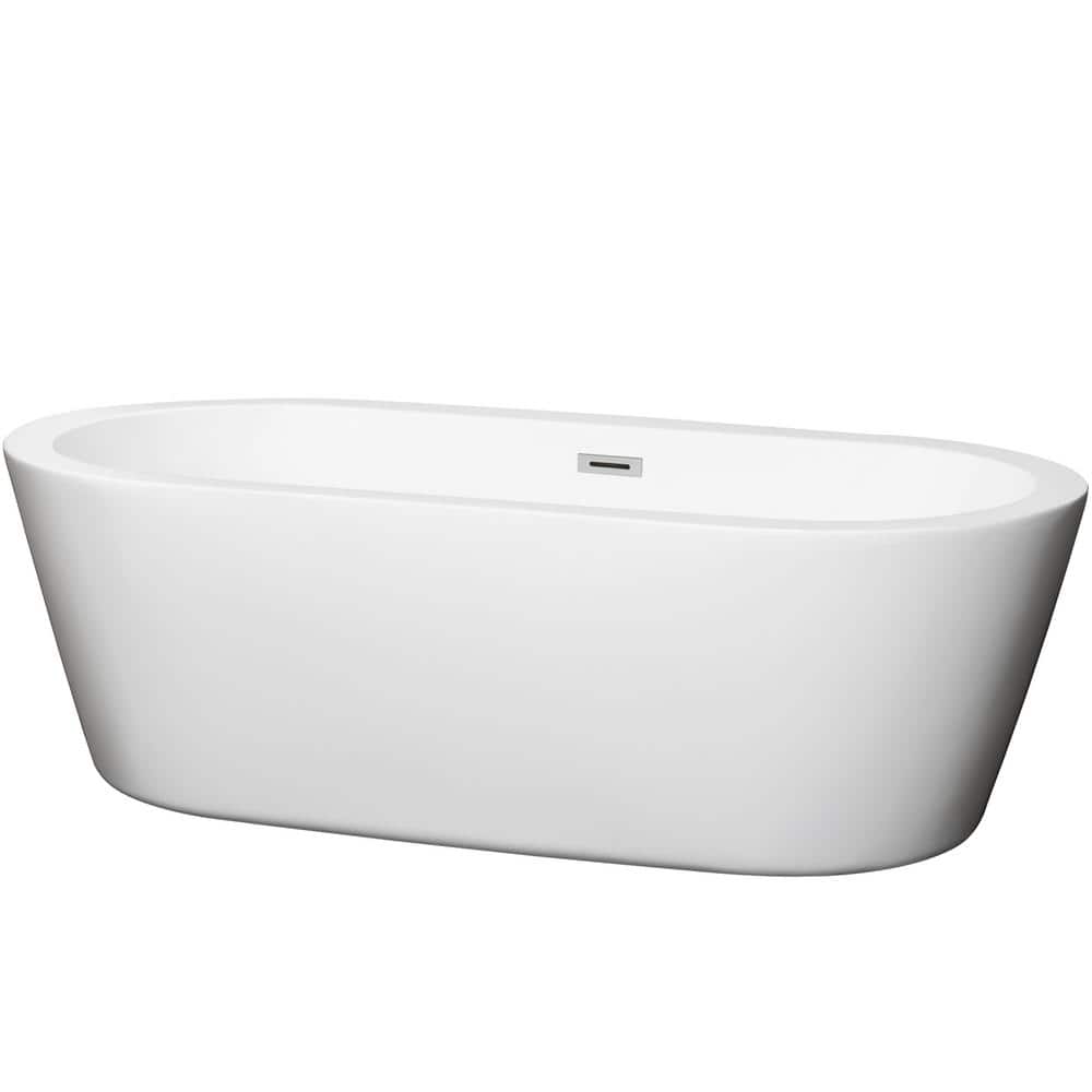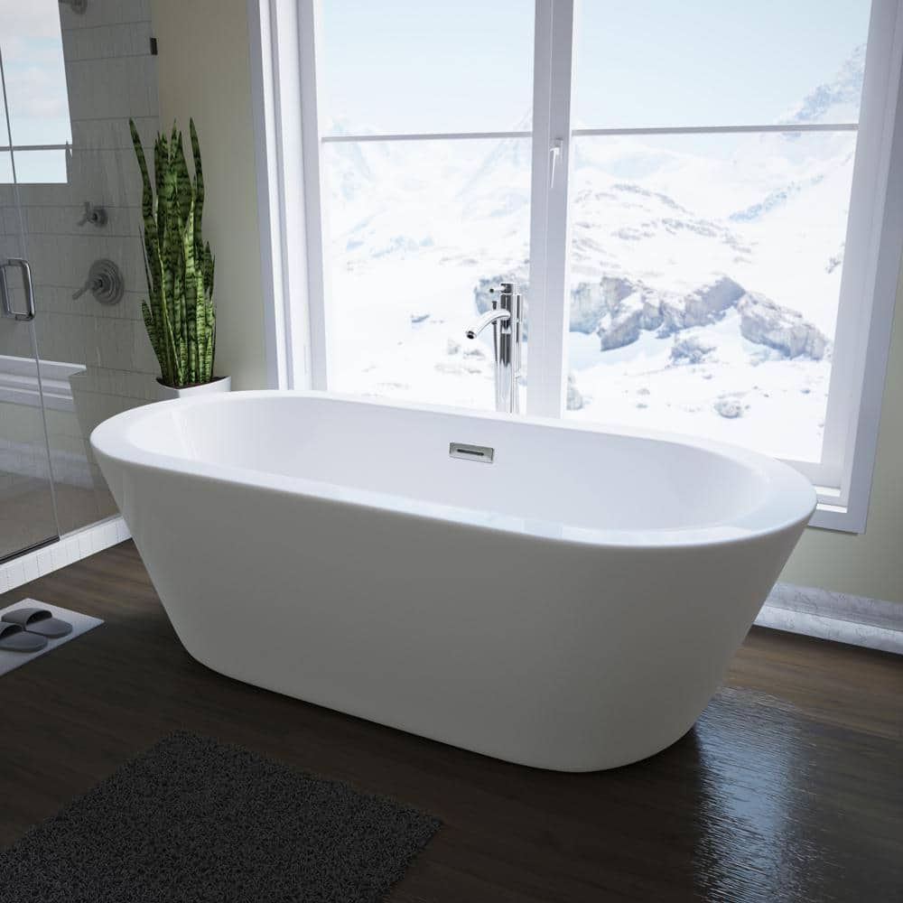 Wyndham Collection Mermaid 71 in. Acrylic Freestanding Soaking Tub in White