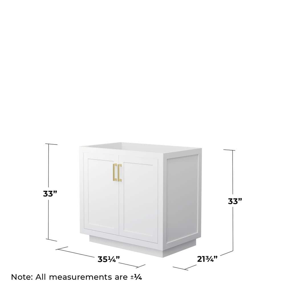 Wyndham Collection Miranda 35.25 in. Single Bath Vanity Cabinet in White with Brushed Gold Trim
