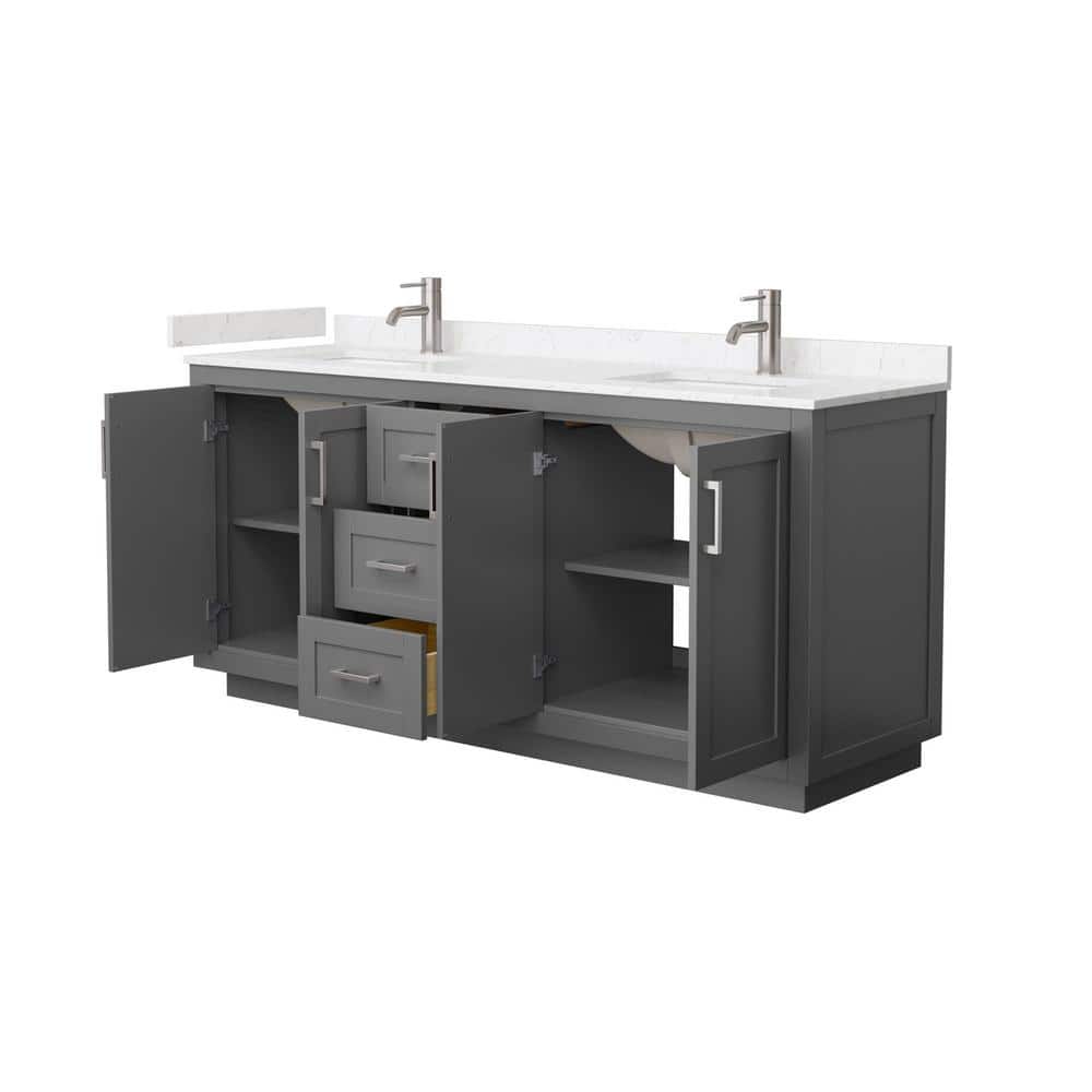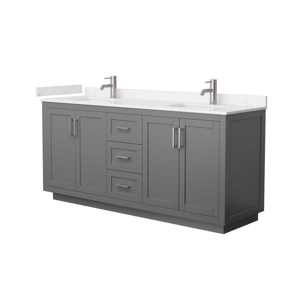 The Wyndham Collection Miranda 72" Double Bath Vanity combines modern design with practical functionality. Featuring a dark gray finish, cultured marble top, and ample storage, it's perfect for enhancing any bathroom.