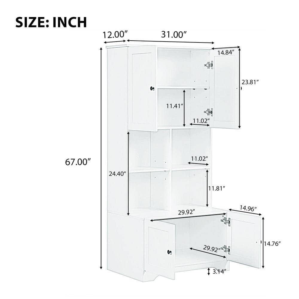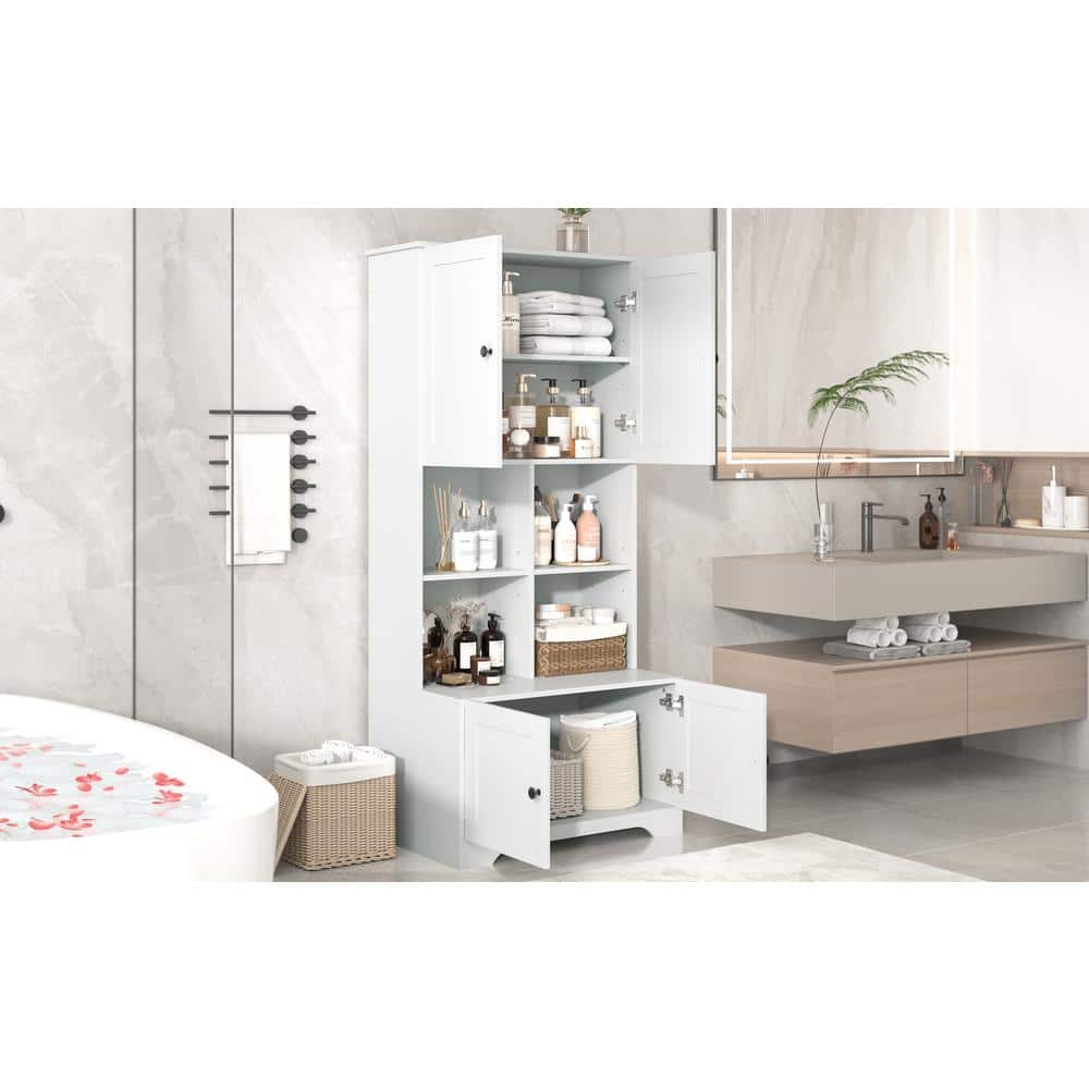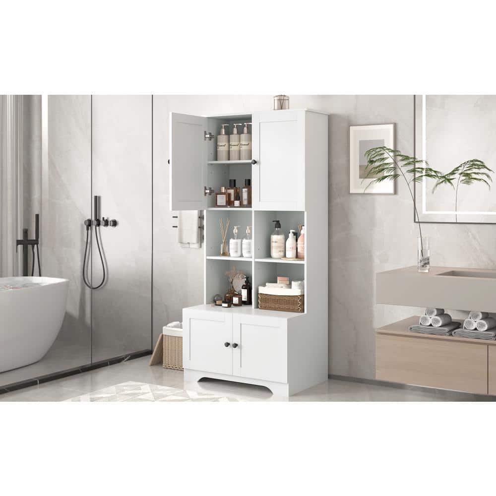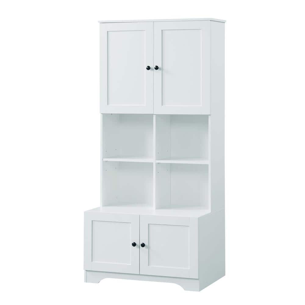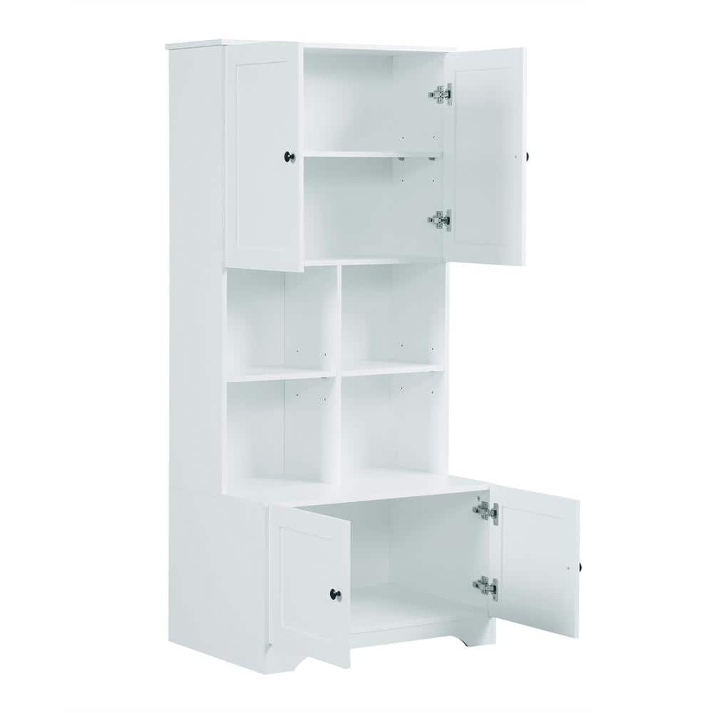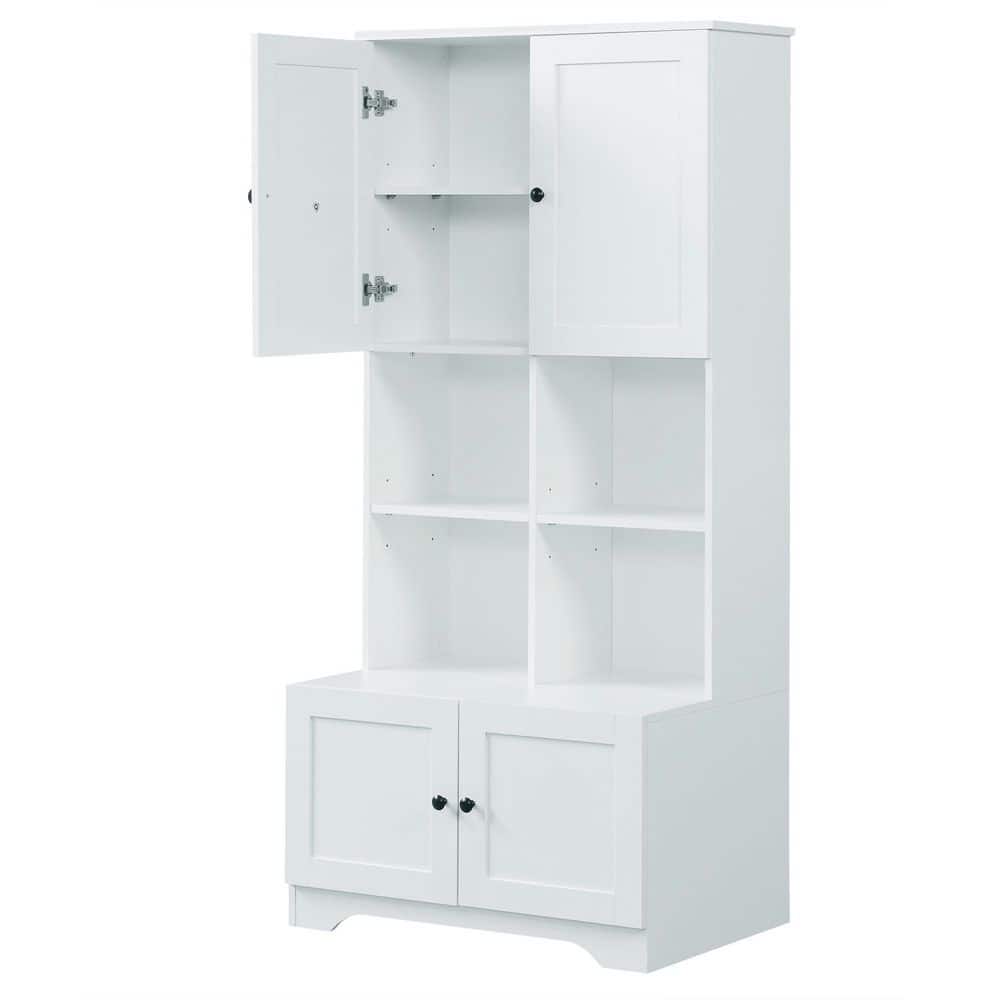 White Linen Cabinet with Doors and Shelves