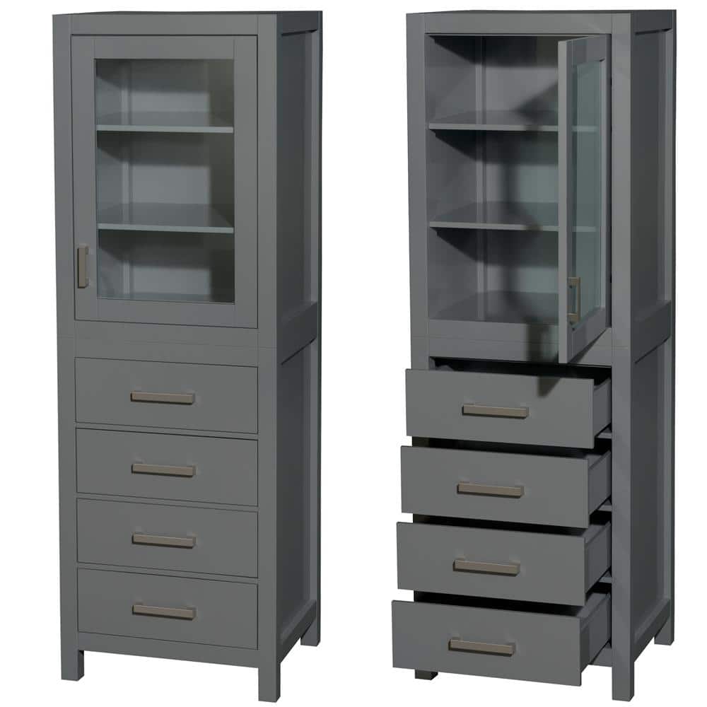 Wyndham Collection Sheffield 24" Dark Gray Linen Cabinet with Brushed Chrome Trim
