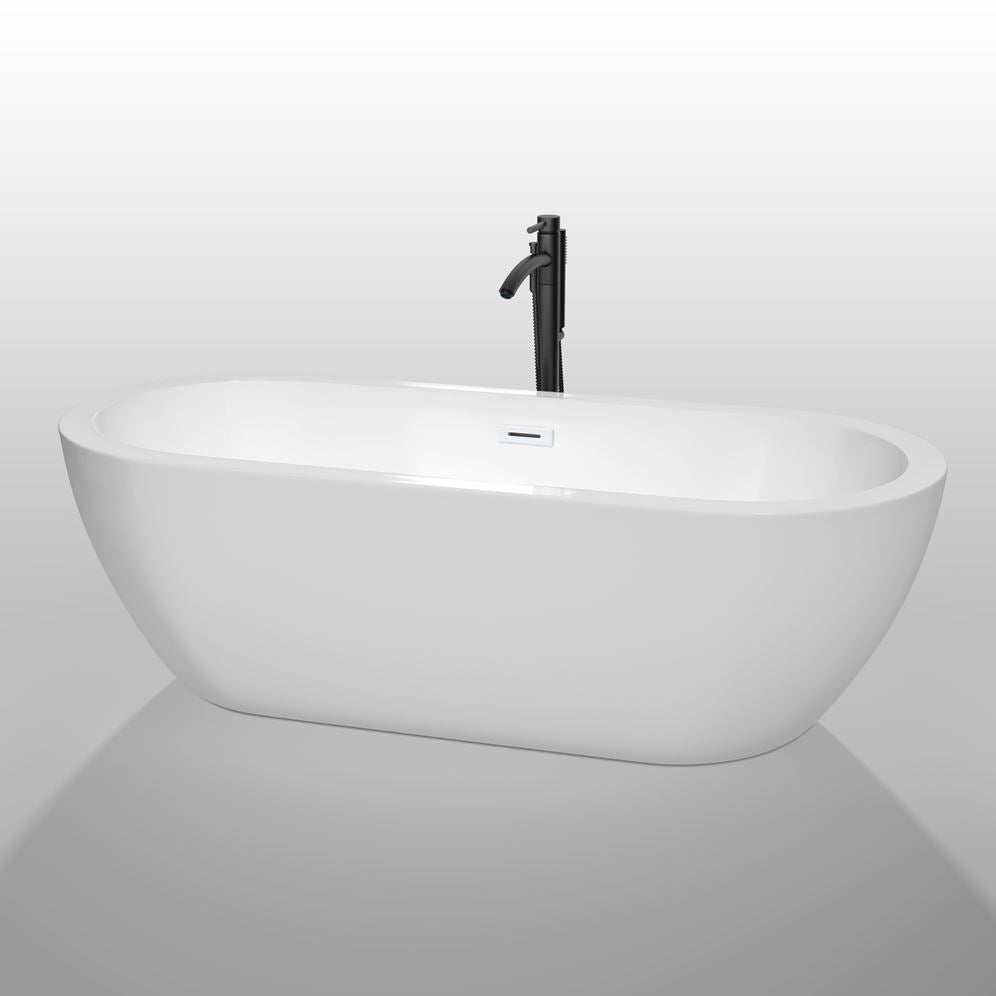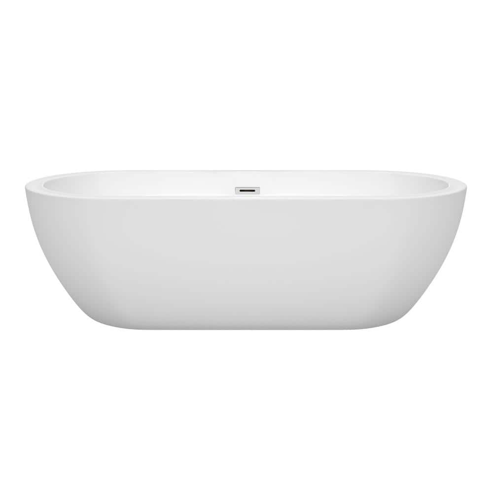 The Wyndham Collection Soho soaking tub offers a luxurious bathing experience with its deep, full-immersion design. Made from durable acrylic, it is lightweight, warm to the touch, and features a modern, minimalist aesthetic.