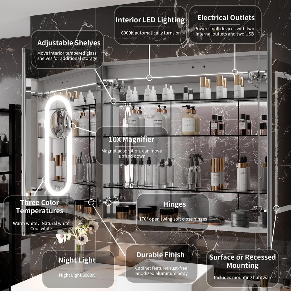 Upgrade your bathroom today with the Xzkai LED Anti-Fog Medicine Cabinet and experience premium convenience coupled with sleek design.