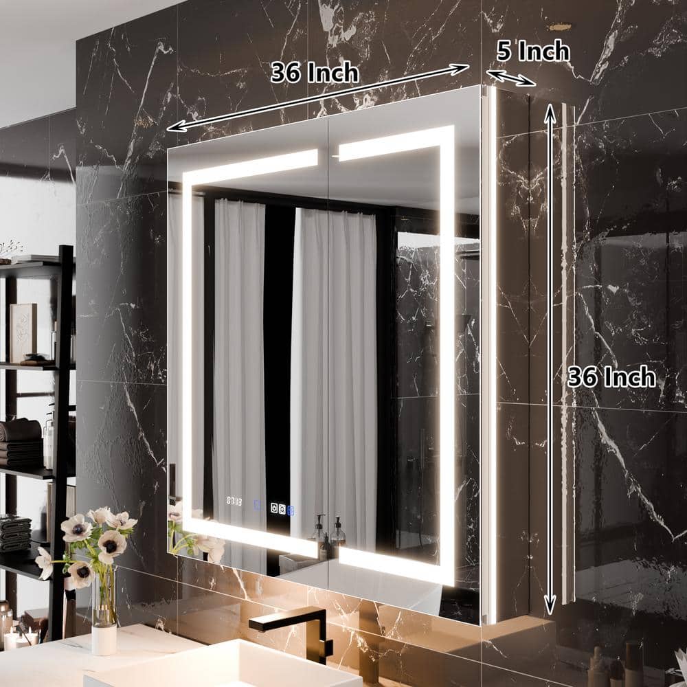 Revolutionize your bathroom storage with the Xzkai 36 in. LED Anti-Fog Medicine Cabinet, a perfect blend of functionality and style. This cabinet offers adjustable LED lighting, built-in USB ports for charging, and quick fog-free mirror technology, making it the ultimate modern solution for maintaining a clutter-free and illuminated bathroom.