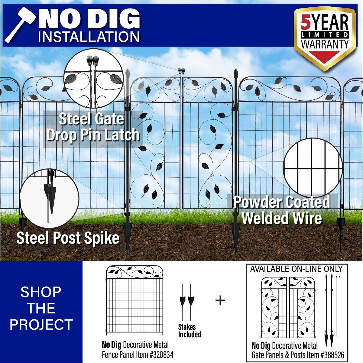 Enhance your garden or walkway with the YARDLINK Black Metal No Dig Decorative Fence Gate. This elegant steel gate features a powder-coated finish for long-lasting durability, while its no-dig installation system ensures quick and easy setup without the need for concrete.