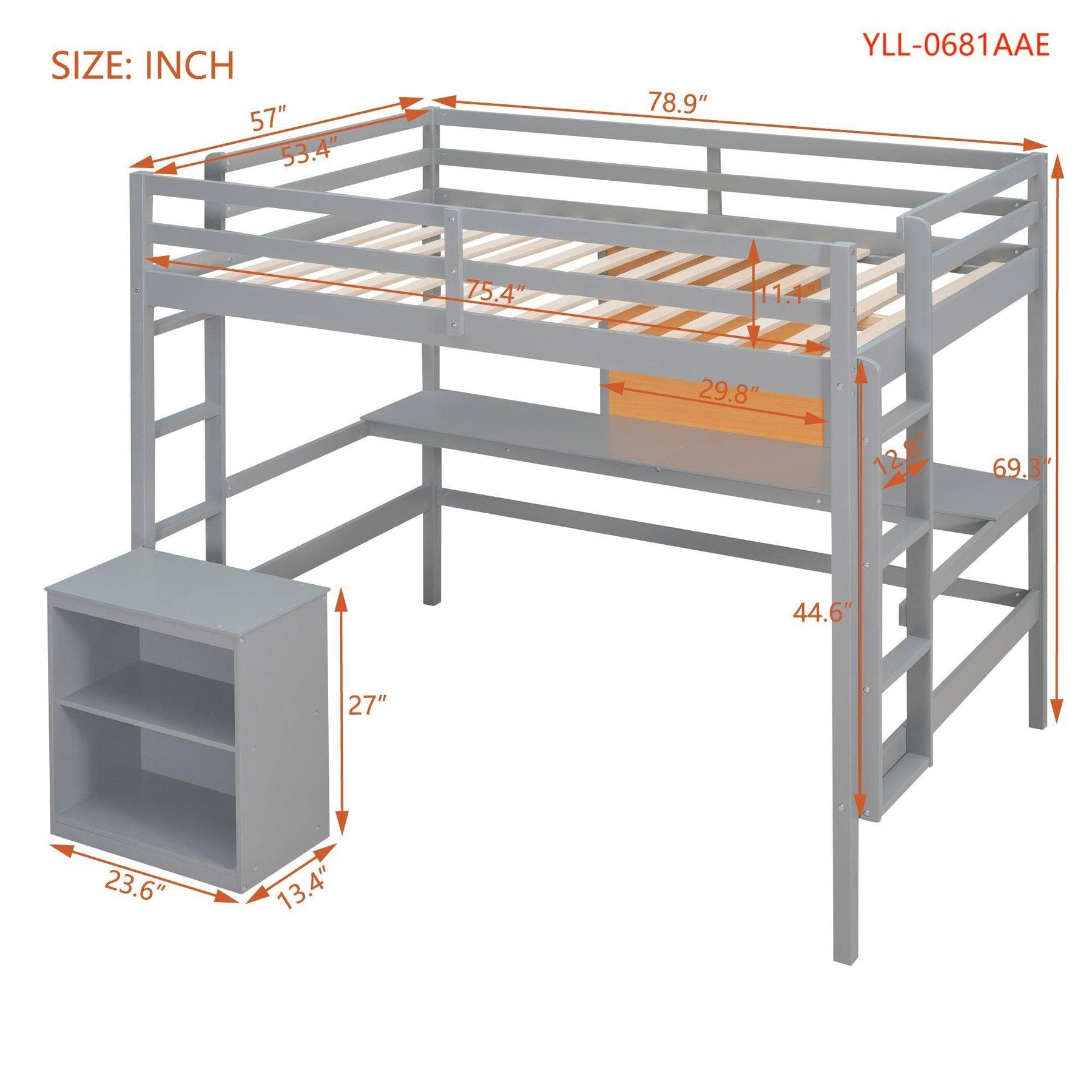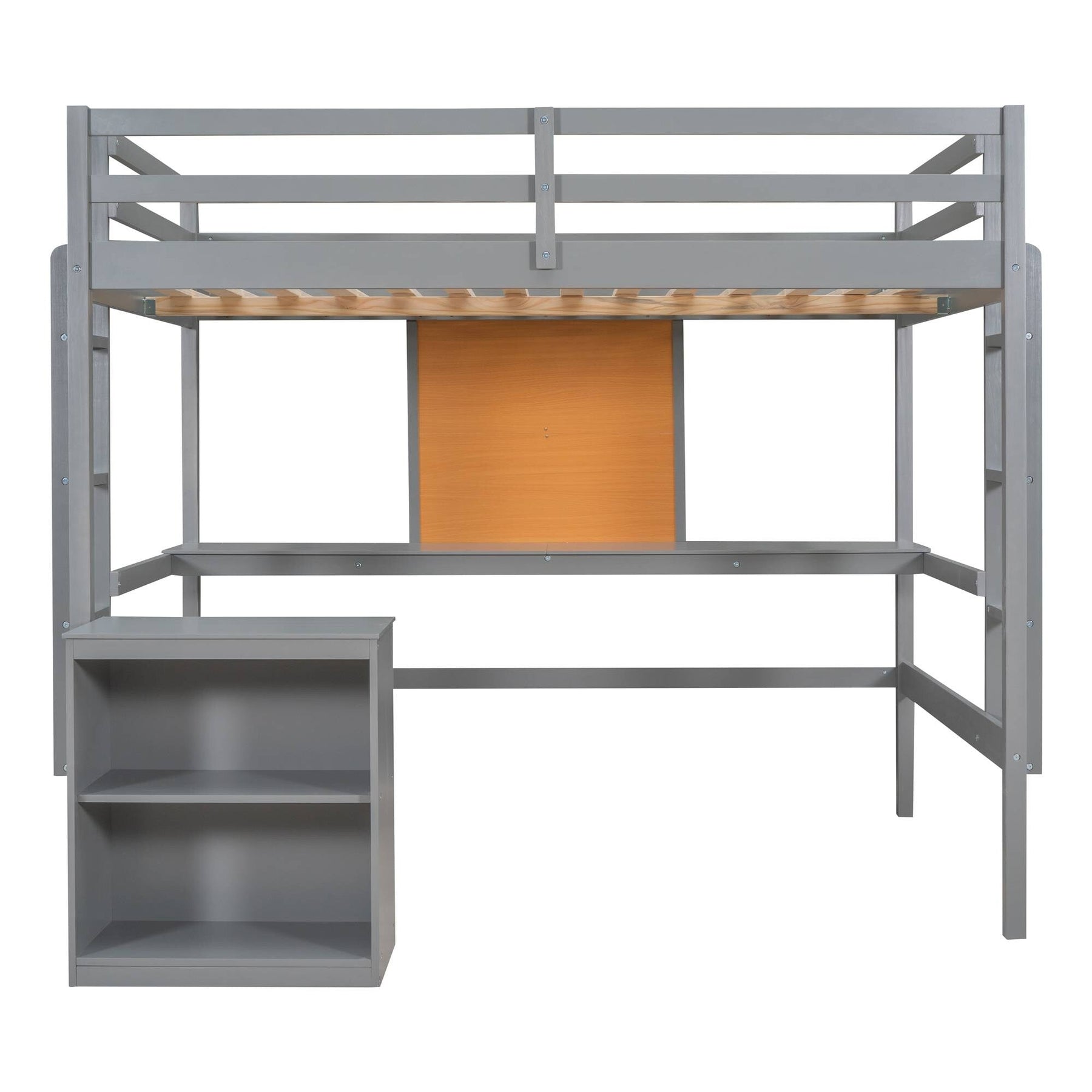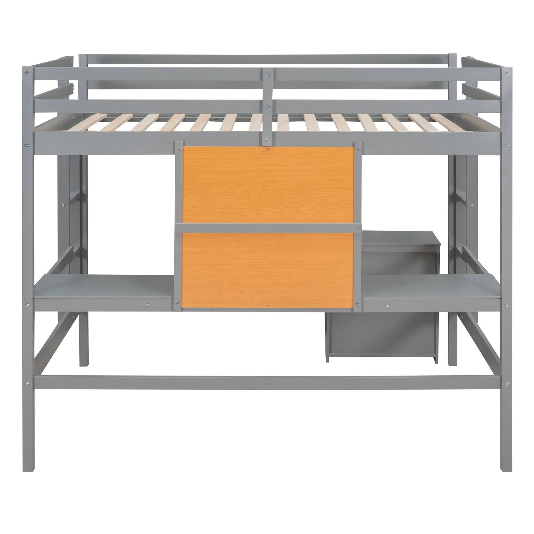 Yiekholo Gray Full Study Loft Bed with Writing Board, Built-in Desk, and Storage Cabinet
