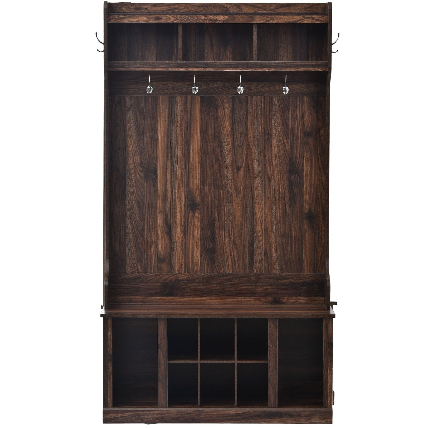Ample Storage: Features front-mounted hooks and side hooks for coats, plus adjustable shoe shelves.