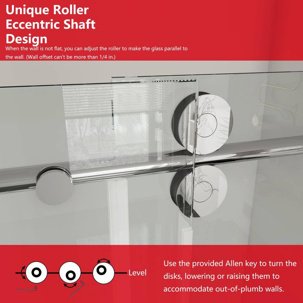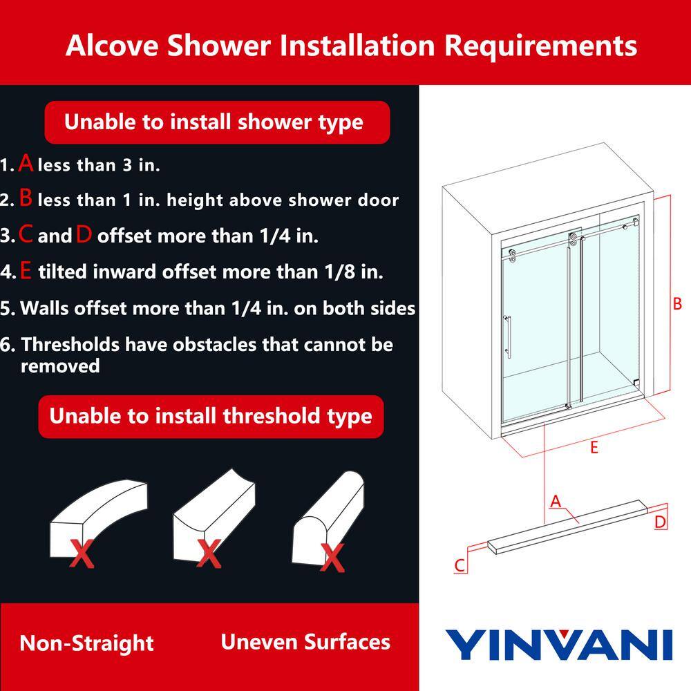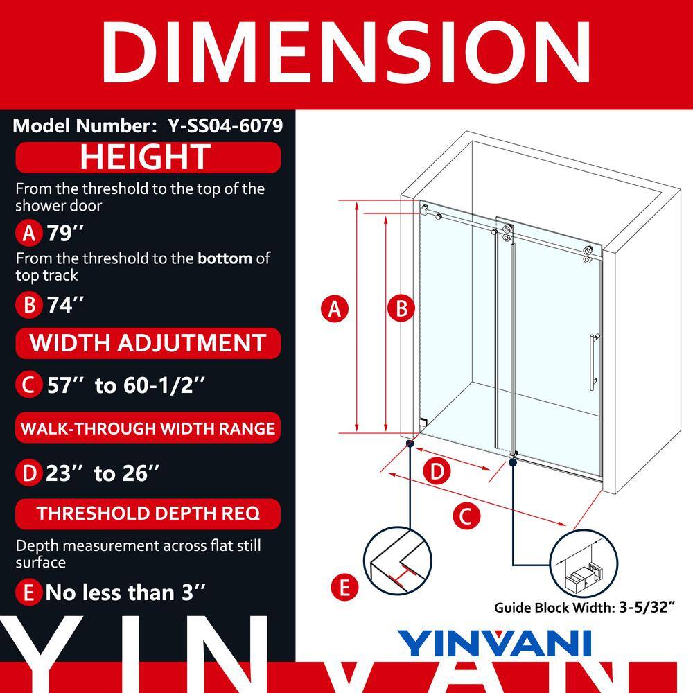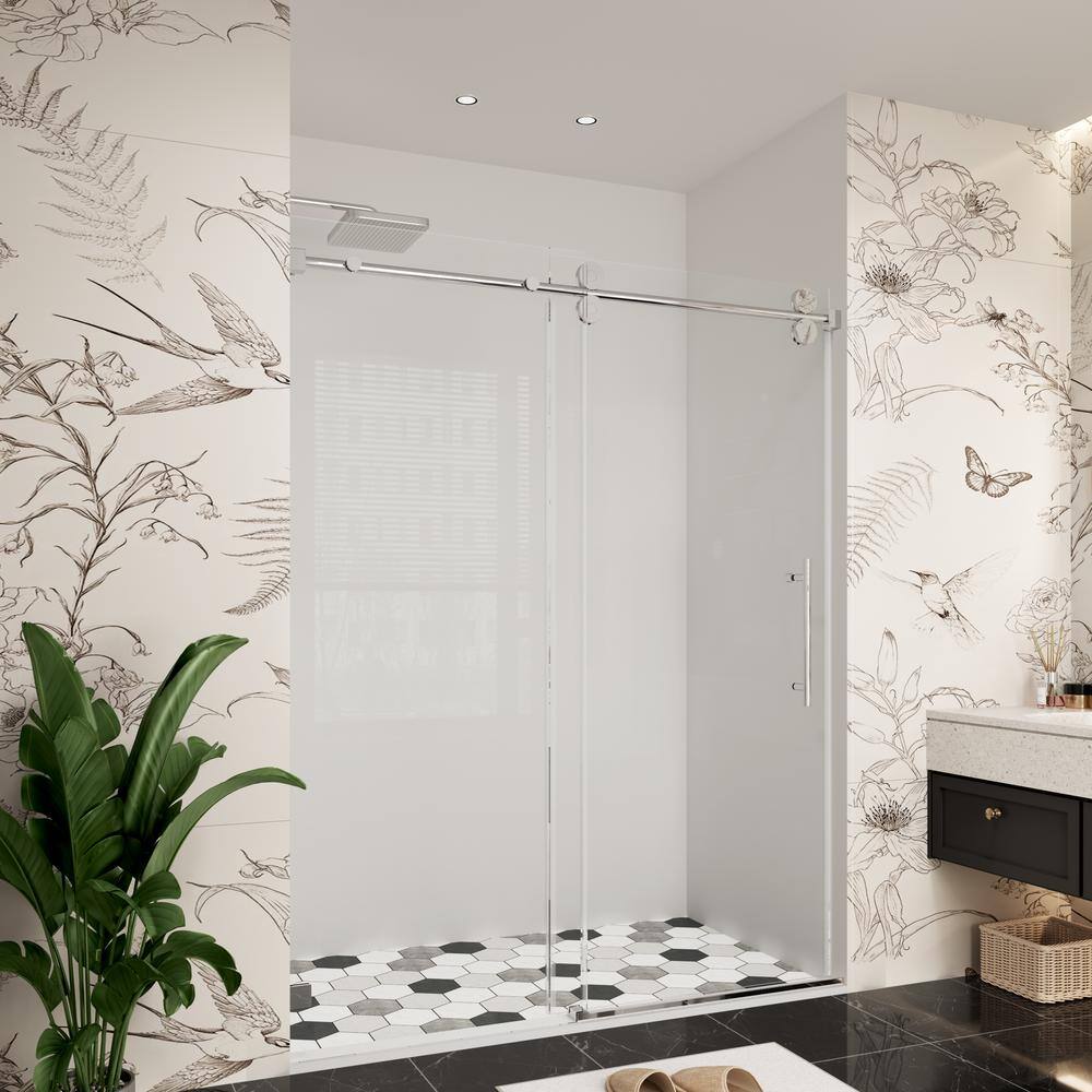 Elevate your bathroom with the YINVANI Frameless Sliding Shower Door, featuring smooth operation and a sleek chrome finish. The 3/8 in. tempered glass with an easy-clean coating ensures a sparkling appearance, while high-quality stainless steel hardware offers long-lasting durability. This shower door provides a luxurious and spacious feel, perfect for modern bathrooms.