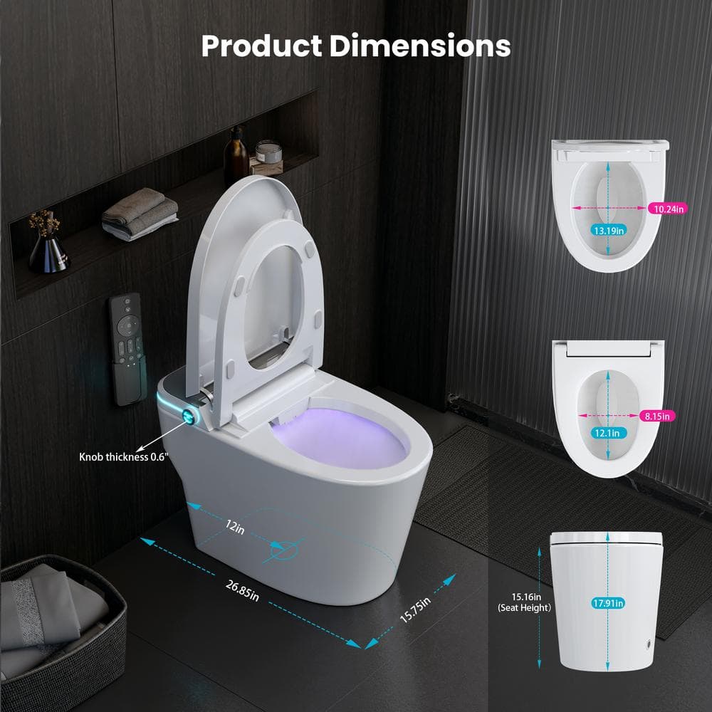 Hands-Free Operation: Automatic lid and flush functions enable a seamless bathroom experience.
