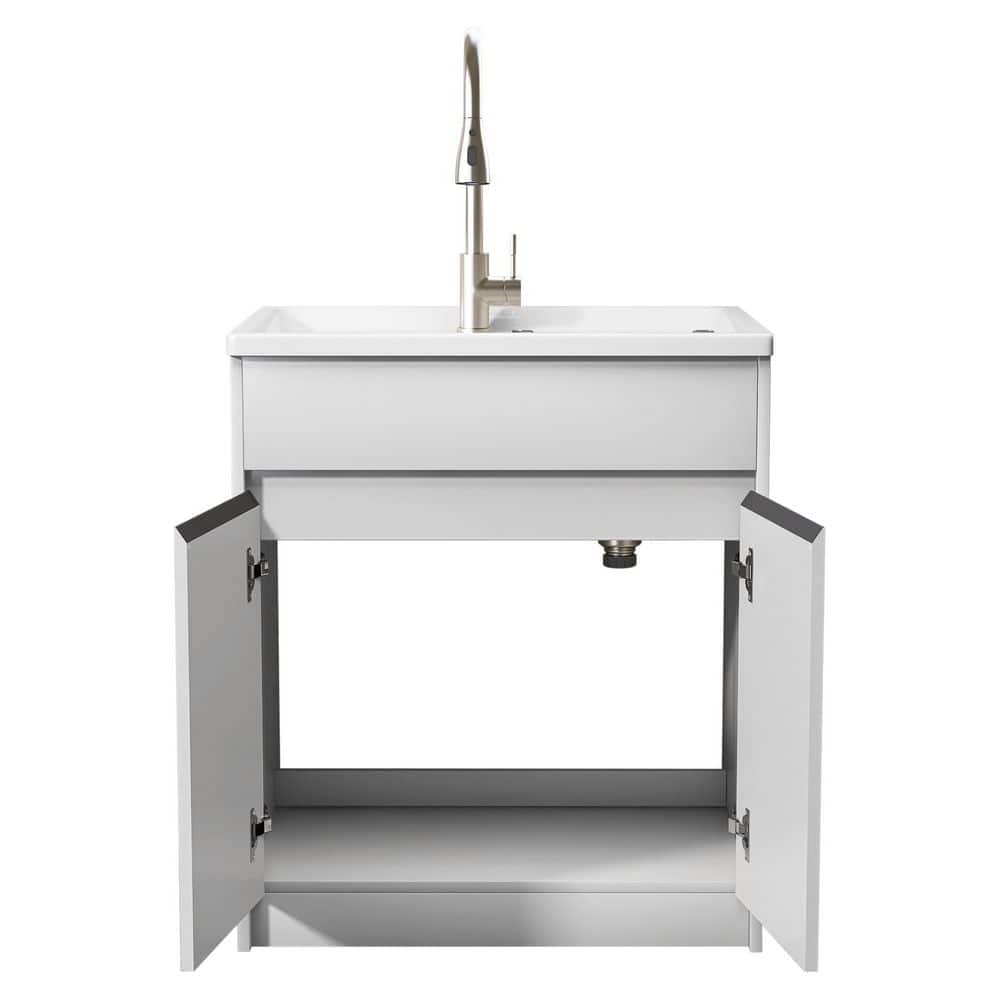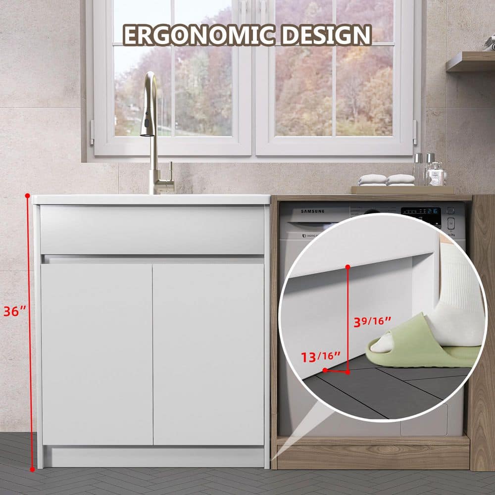 Imagine transforming an often-overlooked laundry corner into a sanctuary of style and functionality. With its sleek white surface and elegant silhouette, the Zeafive Laundry Sink Cabinet offers more than just utility—it brings a sophisticated edge to utilitarian spaces. The stainless steel faucet adds a modern touch, while the ample storage makes organizing a breeze. Whether placed in a laundry room or a multi-purpose basement, this piece is a testament to luxurious, efficient living.
