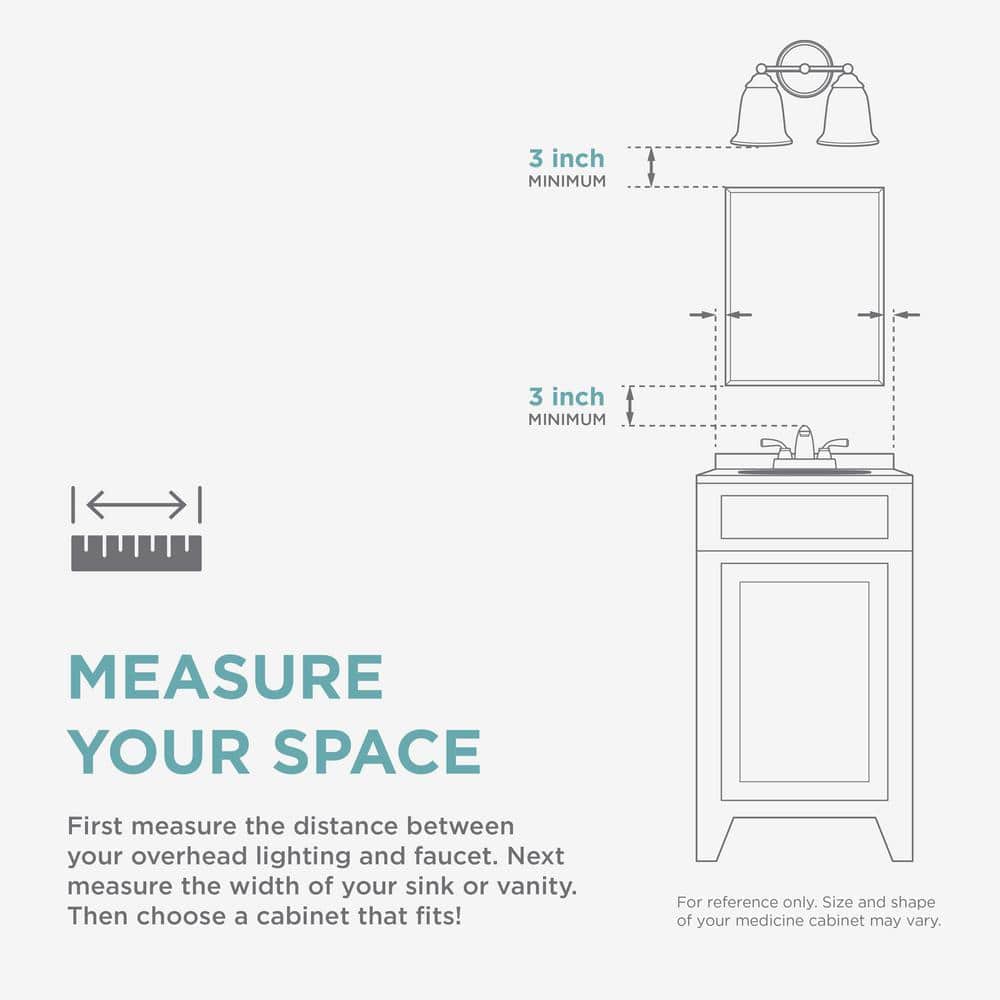 Q: How do I ensure safety clearance during installation? A: It's recommended to have a clearance of at least 3 inches from any light fixtures above the cabinet and 3 inches from the faucet below.