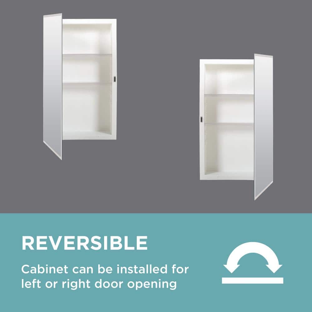 Elevate your bathroom storage with the Zenith 16x26 Inch Frameless Beveled Mirror Medicine Cabinet, featuring a sleek, rust-resistant design. Perfect for either recessed or surface mounting, this cabinet combines functionality with style, offering a beveled mirrored door and adjustable storage to fit your needs.