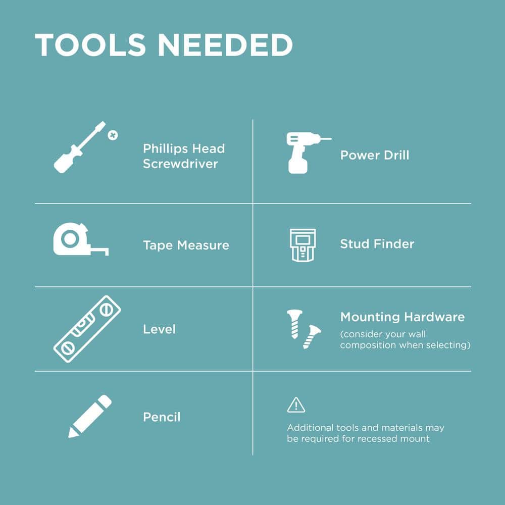 Q: What are the dimensions for a recessed installation? A: The minimum wall opening required for recessed installation is 13.1 in. W x 23.1 in. H x 3 in. D.