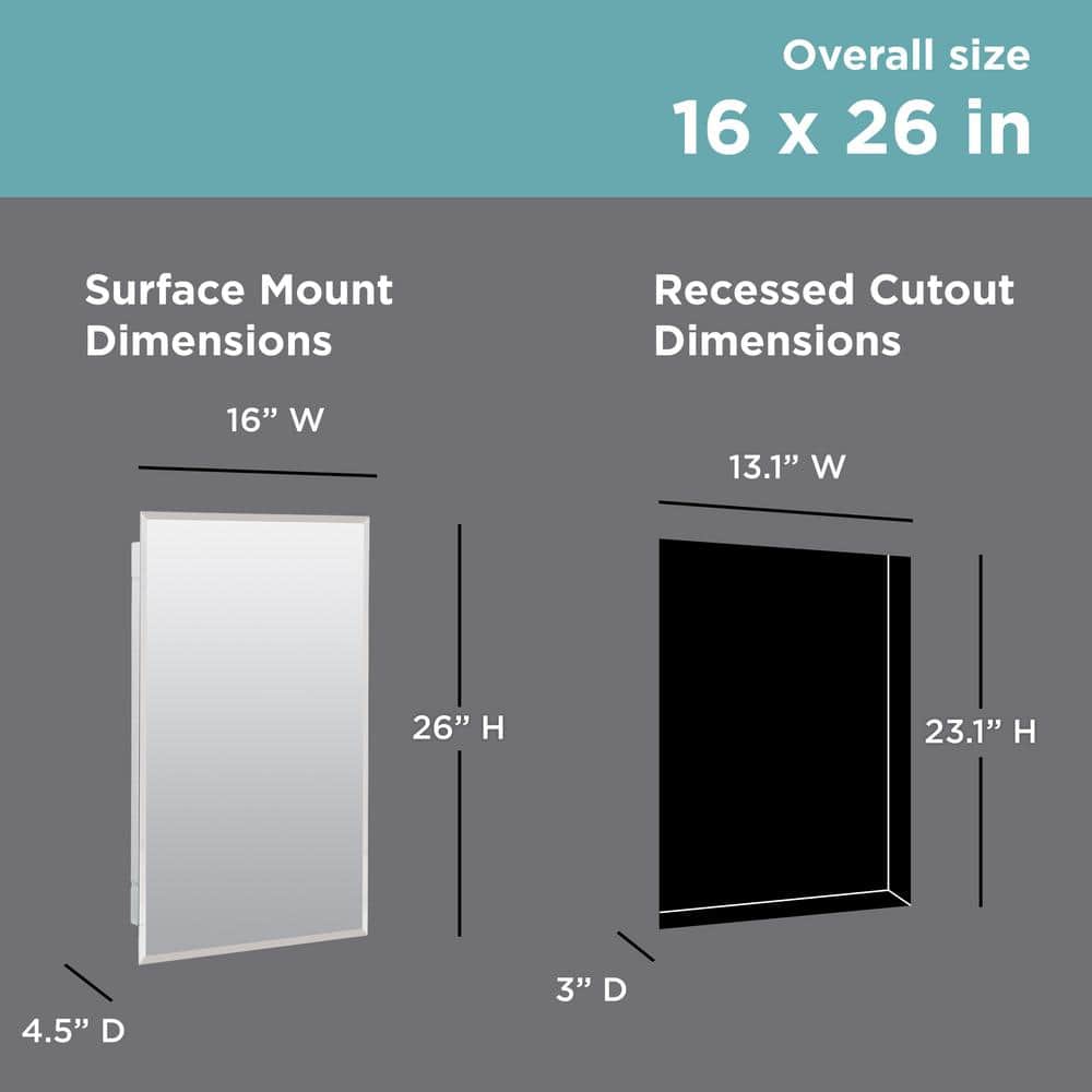16x26 Inch Frameless Beveled Mirror Medicine Cabinet