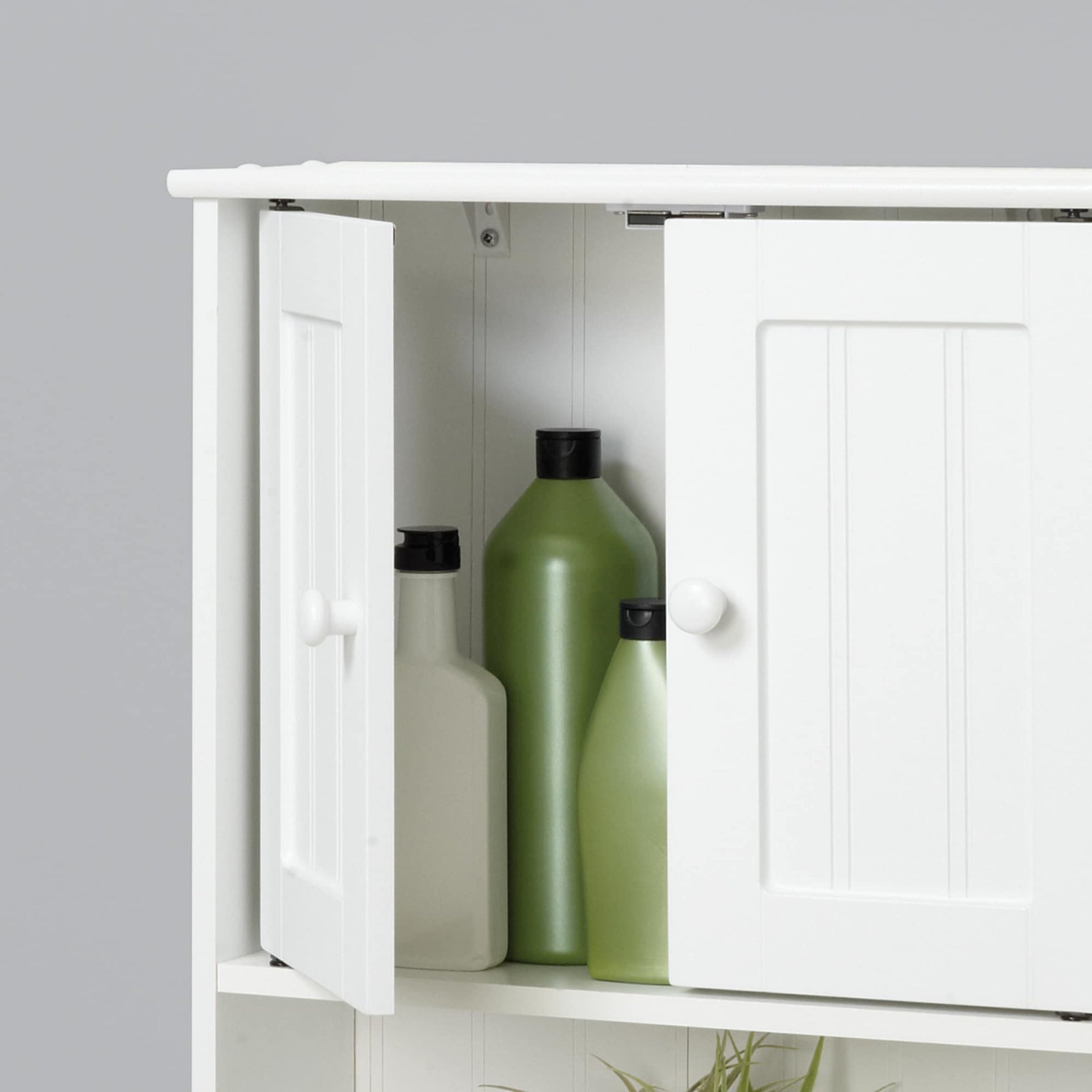 Q: Can I adjust the shelves within the cabinet? A: The shelves in this cabinet are fixed and non-adjustable, designed to accommodate a variety of bathroom items comfortably.