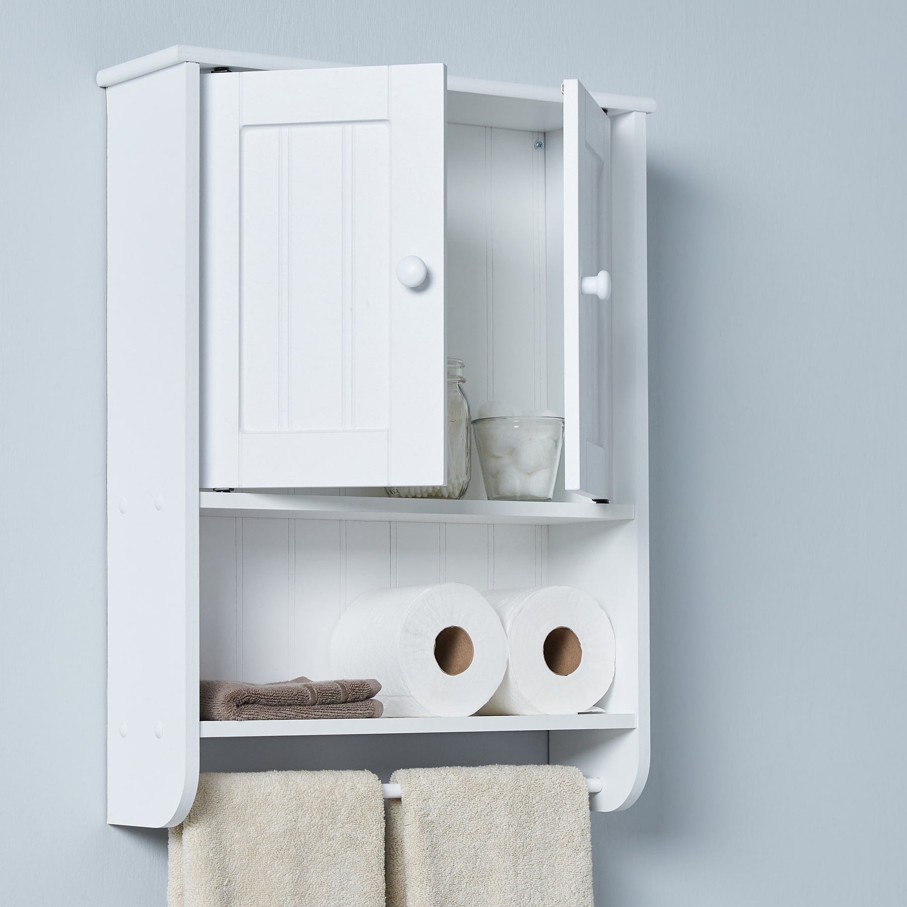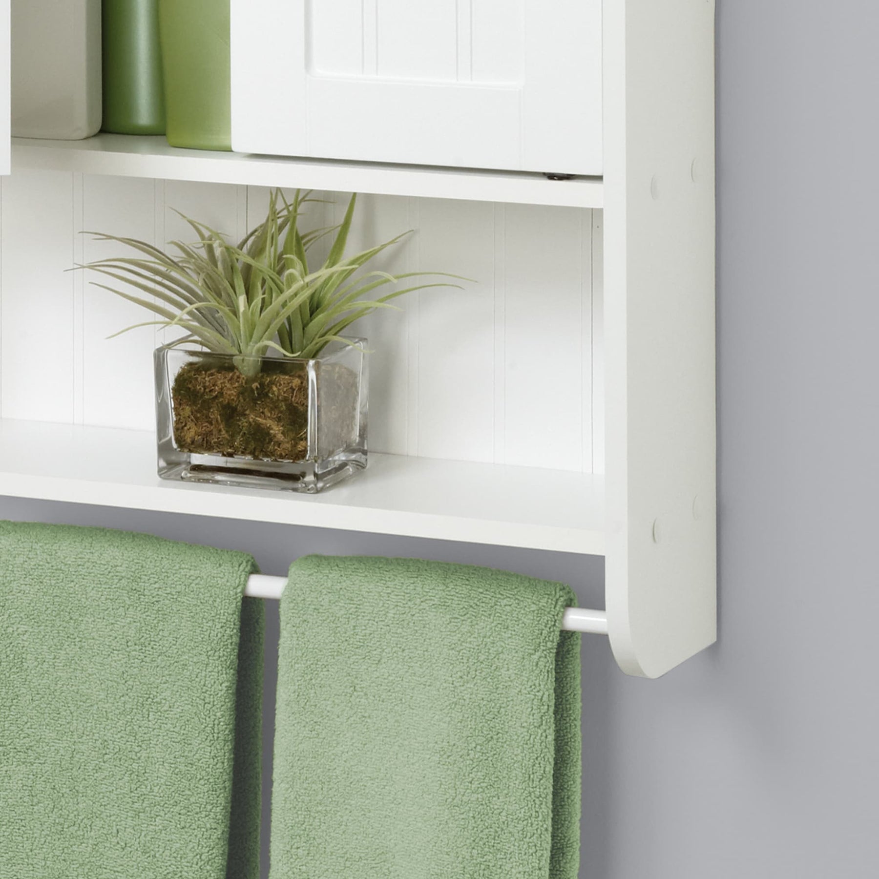 Transform your bathroom into a serene retreat with the Zenith Cottage White Wall Cabinet. Its gentle white hue provides a blank canvas for luxury, effortlessly molding into any décor. Notice how the full-length towel bar softens the transition between cabinetry and bath essentials, bringing a touch of elegance to your space. Consider pairing with lush green plants or artful soaps to bring a sense of tranquility and style to your bathroom. With its ability to seamlessly blend functionality and aesthetics, this cabinet is truly indispensable for elegant living.