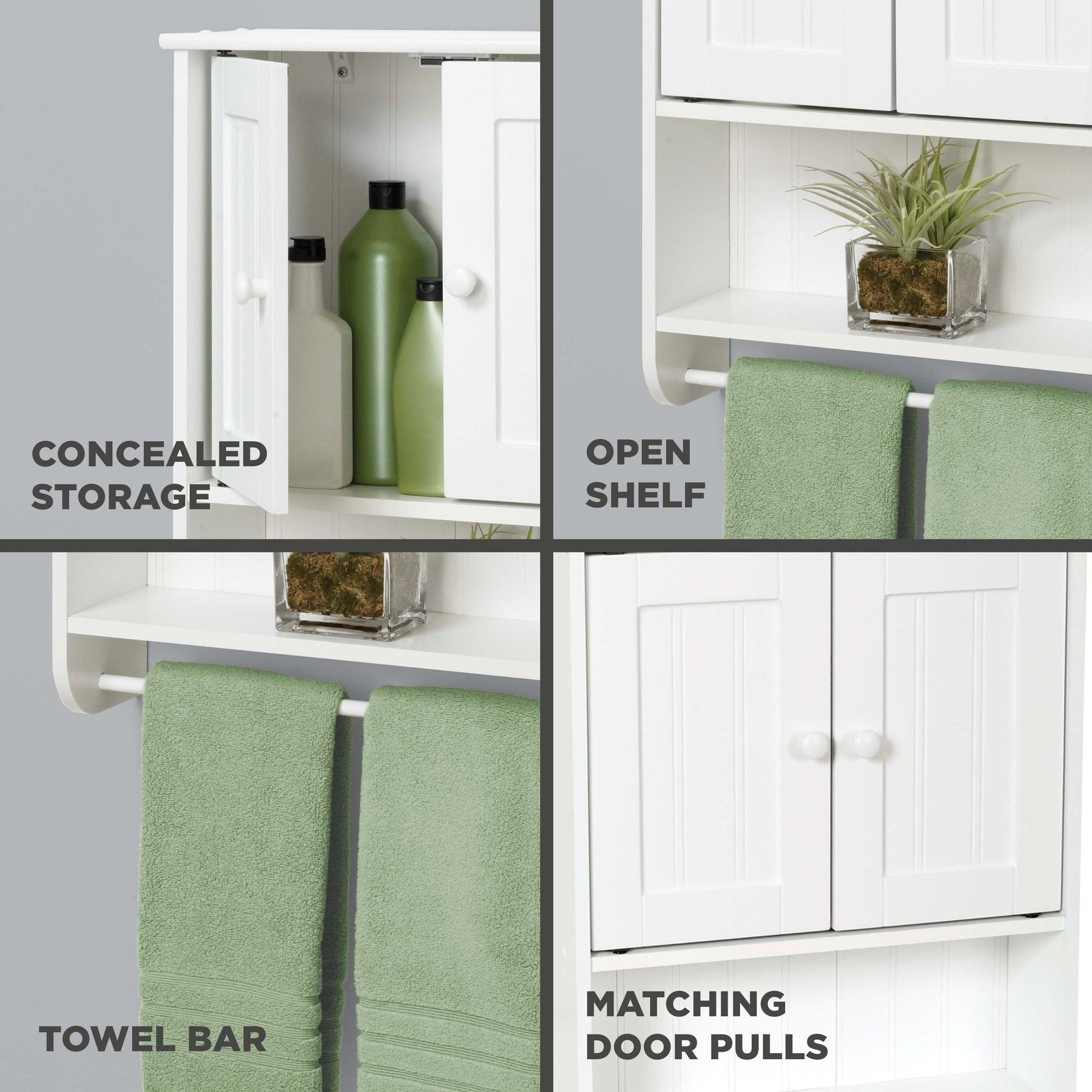 Enhance your bathroom's function and style with the Zenith Cottage White Bathroom Wall Cabinet. This versatile cabinet provides both open and concealed storage, making it perfect for organizing toiletries and displaying decorative items. Easy to assemble and mount, it seamlessly fits into any bathroom's aesthetic.