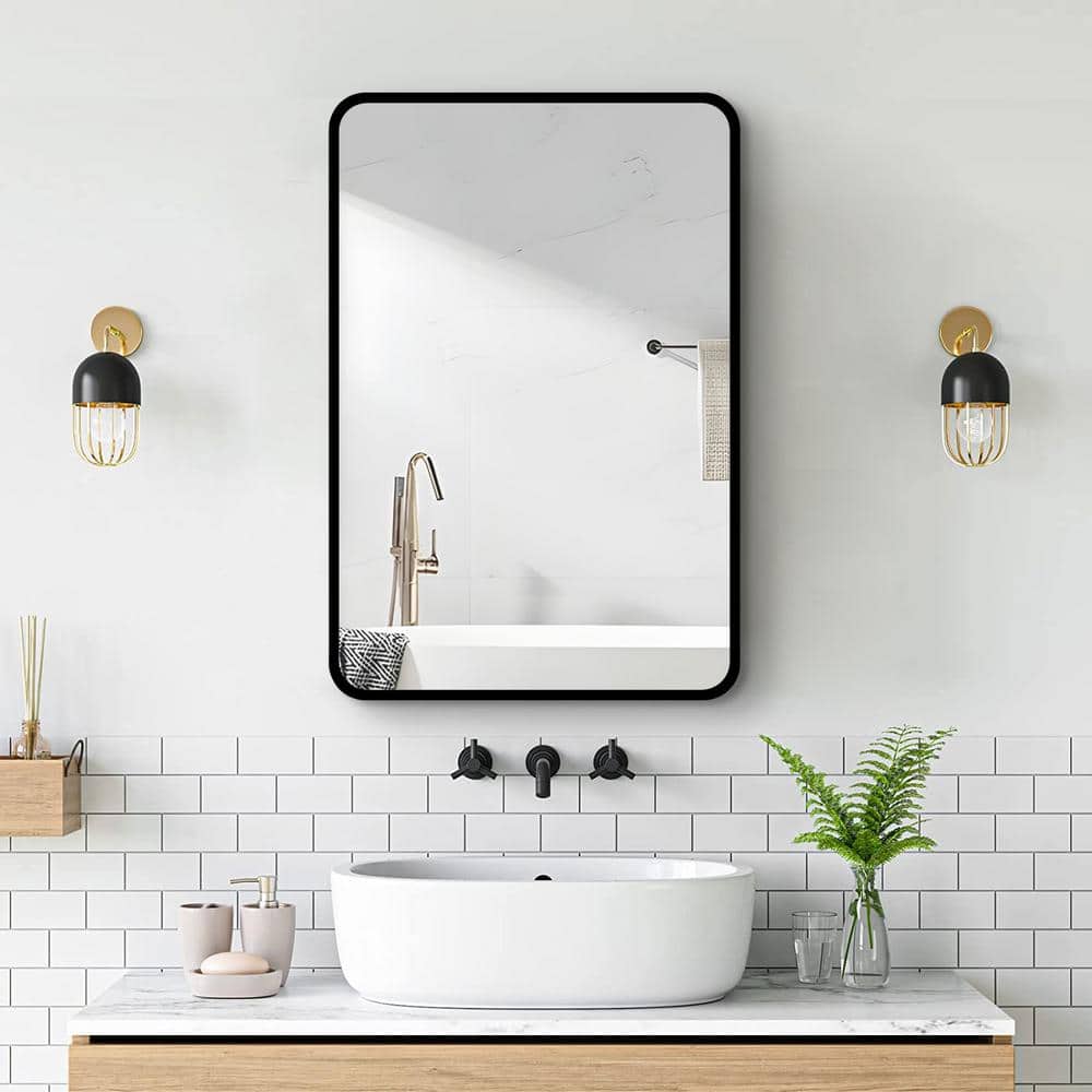 24x30 Rectangular Black Metal Medicine Cabinet with Mirror