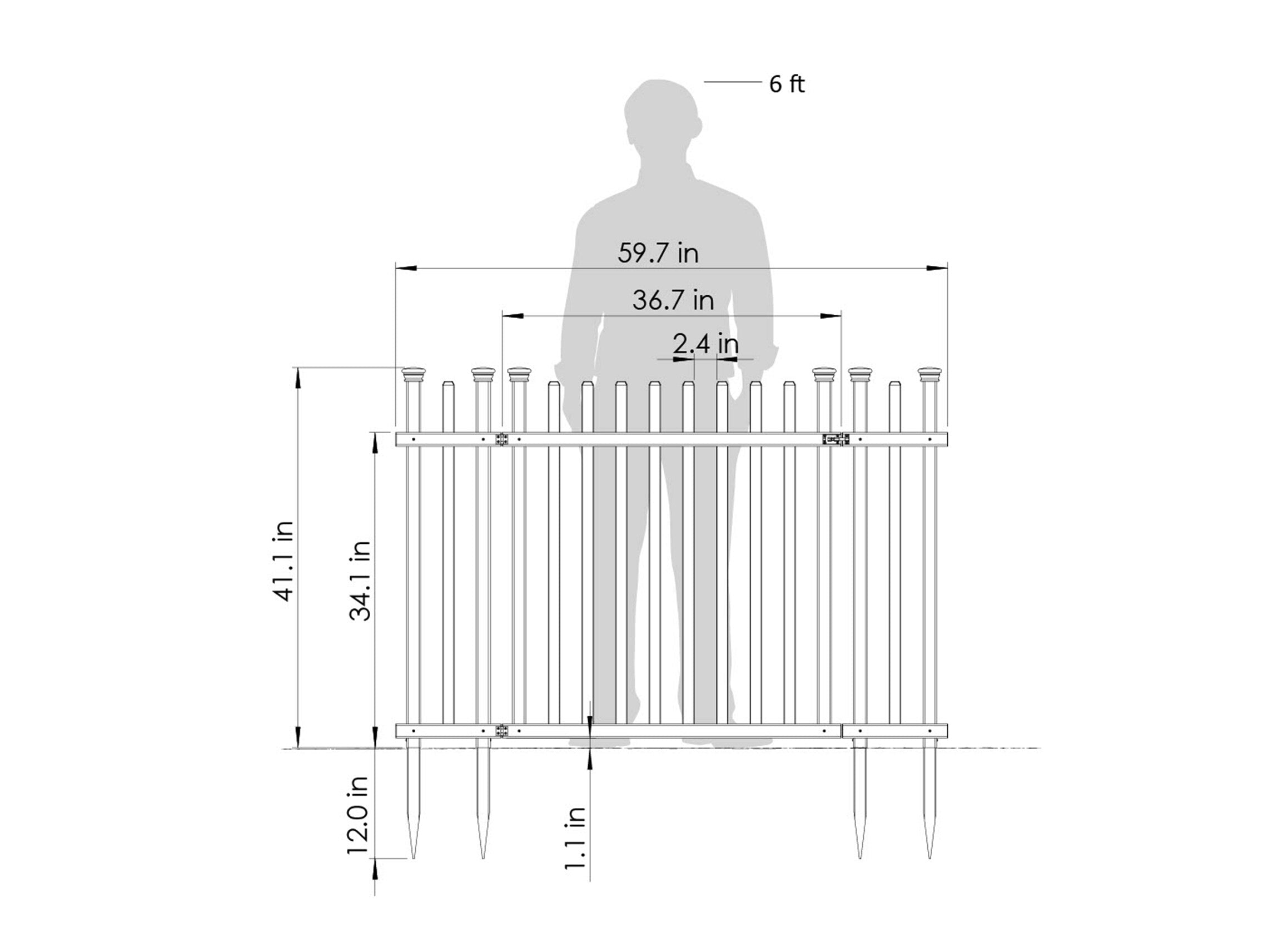 - Dimensions: 59.7 in W x 41.1 in H with spaced pickets for visibility and charm