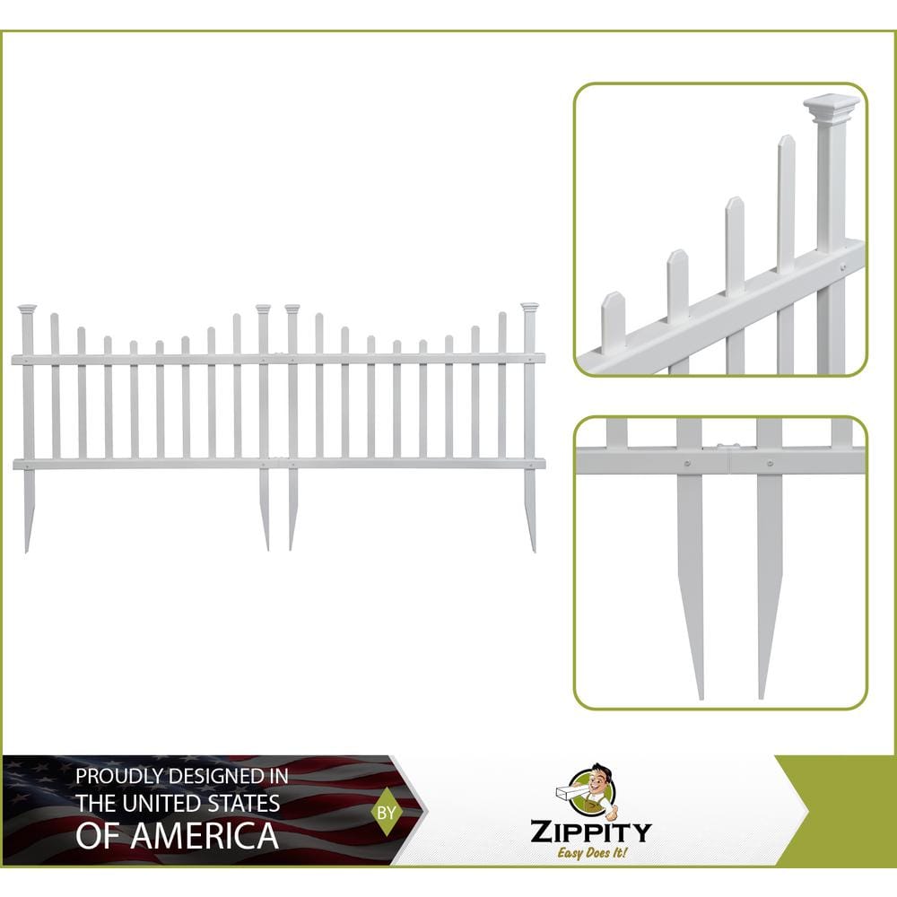 Enhance your yard's curb appeal with the Zippity Outdoor Products Washington Vinyl Picket Fence Panel Kit. Crafted from weather-resistant vinyl, this no-dig fence offers easy installation and maintenance-free durability. With its charming swooped picket design, it's both functional and beautiful.
