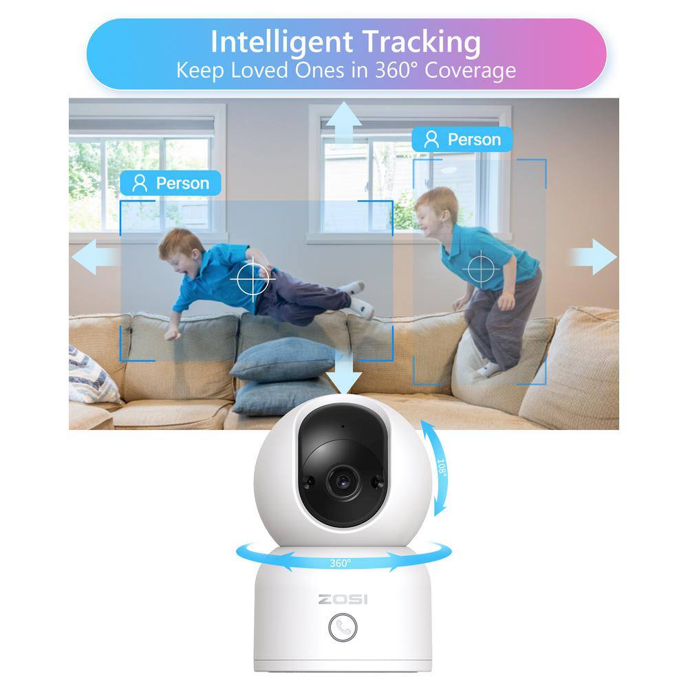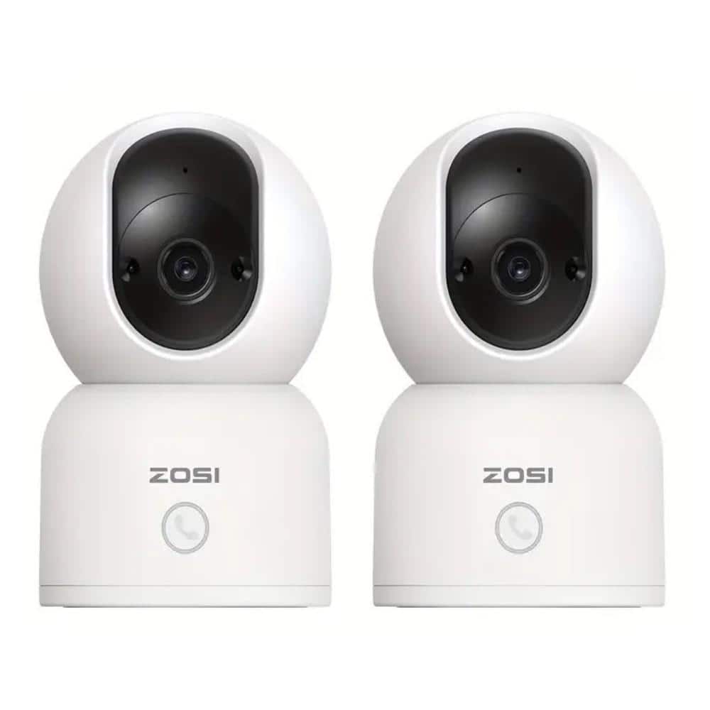 ZOSI 3MP 2K PTZ WiFi Plug-in Security Camera Baby Monitor, One Press Call, 2-Way Audio, Smart AI Detection, 2.4/5GHZ- 2 Packs