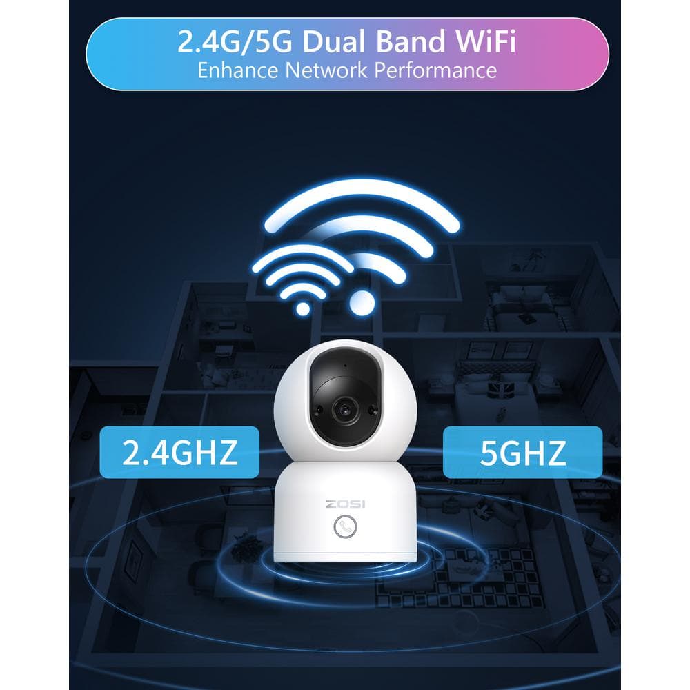 Enhance your home security with the ZOSI 3MP 2K PTZ WiFi Security Camera. Featuring automatic 360° tracking and smart AI detection, this camera keeps you always connected with real-time alerts. With dual-band WiFi connectivity and multiple storage options, it's perfect for seamless live viewing and recording.