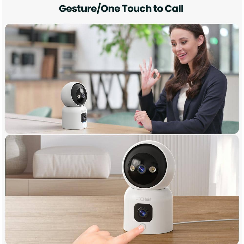 ZOSI Dual-Lens 4MP Indoor Camera with 360° Pan/Tilt and Gesture Calling