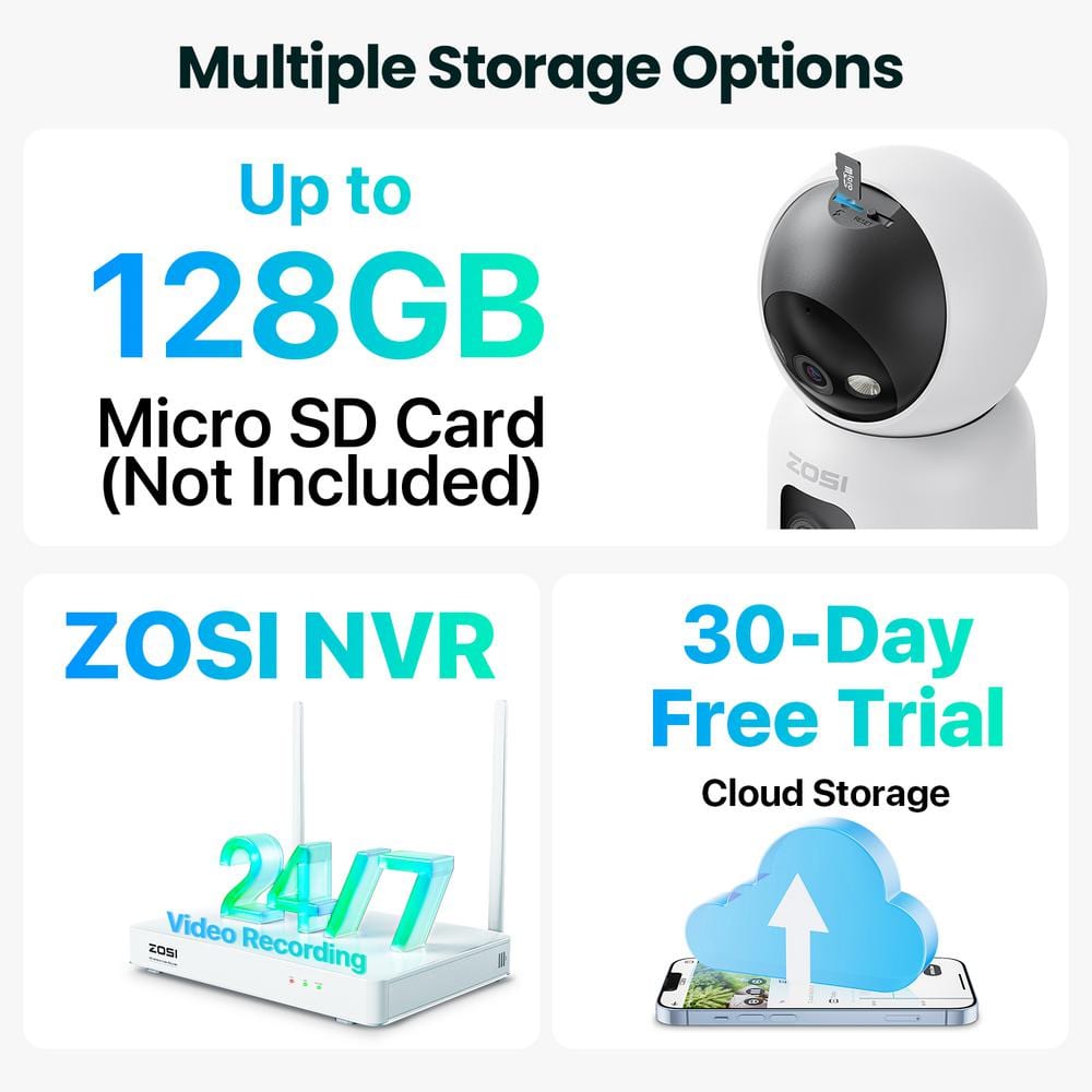 • Flexible Storage Options: Supports micro SD card storage and offers a 30-day free cloud storage trial.