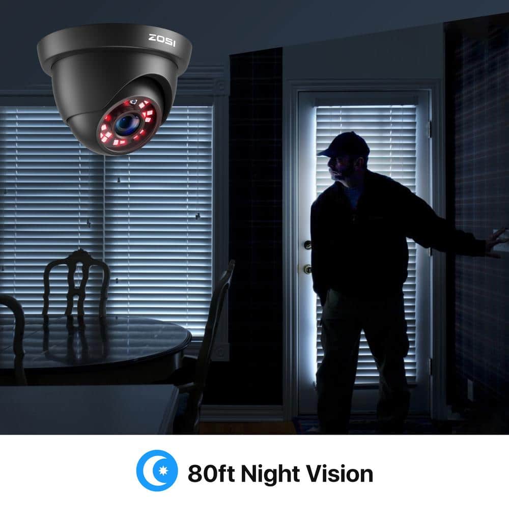 Enhance your surveillance system with the ZOSI 1080p Wired Dome Security Camera. This four-pack offers crystal-clear HD imaging, robust construction for indoor or outdoor use, and up to 80ft of night vision. Ideal for protecting your home or business, these cameras are compatible with multiple DVR systems.